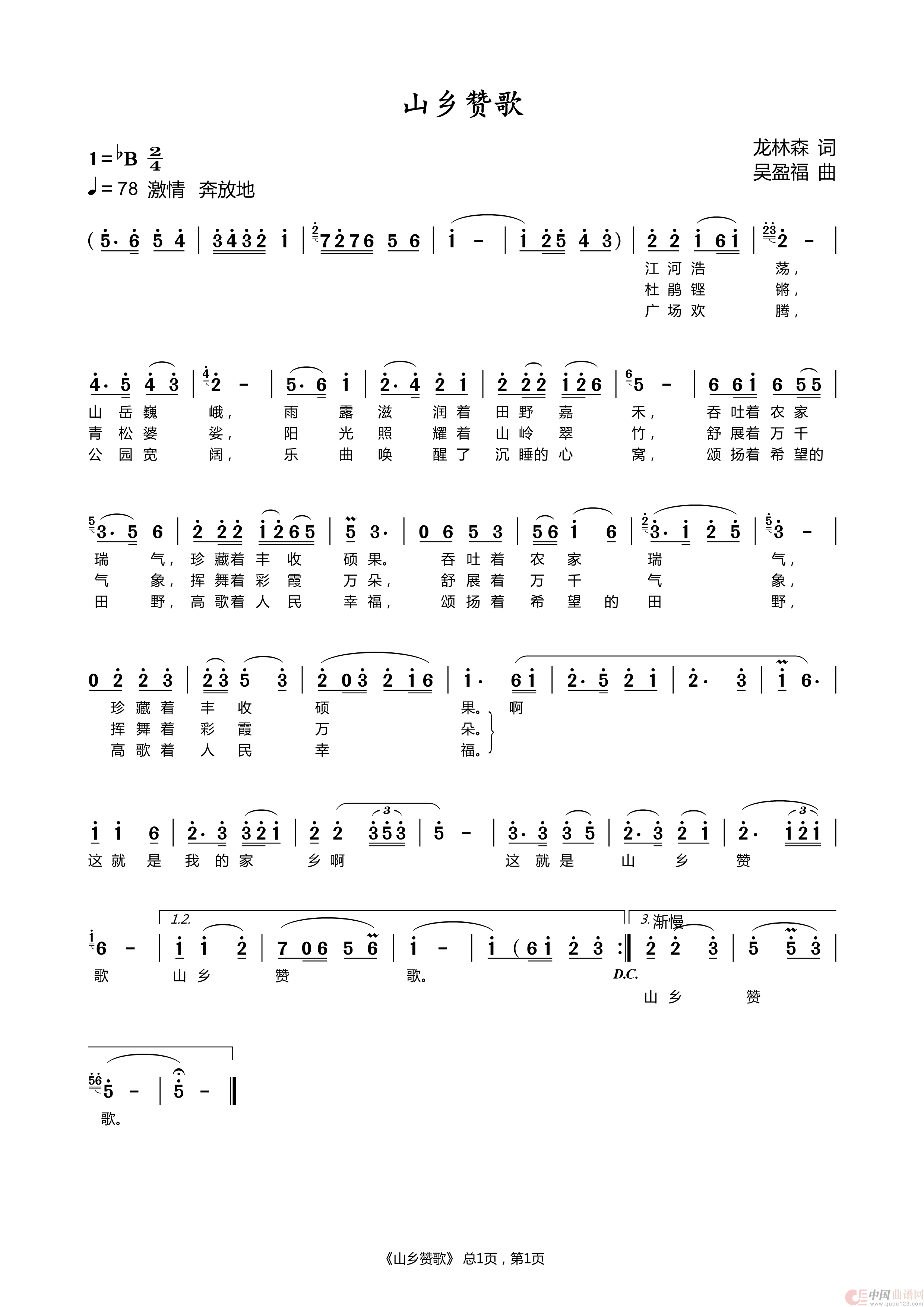 关于《山乡赞歌》曲谱的评论