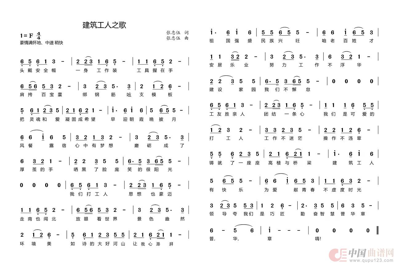 关于《建筑工人之歌》曲谱的评论