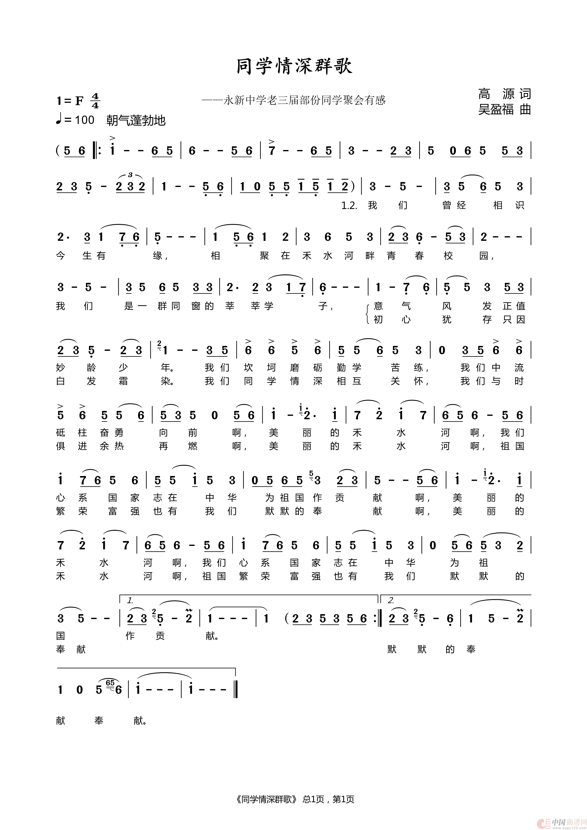 关于《同学情深群歌》曲谱的评论