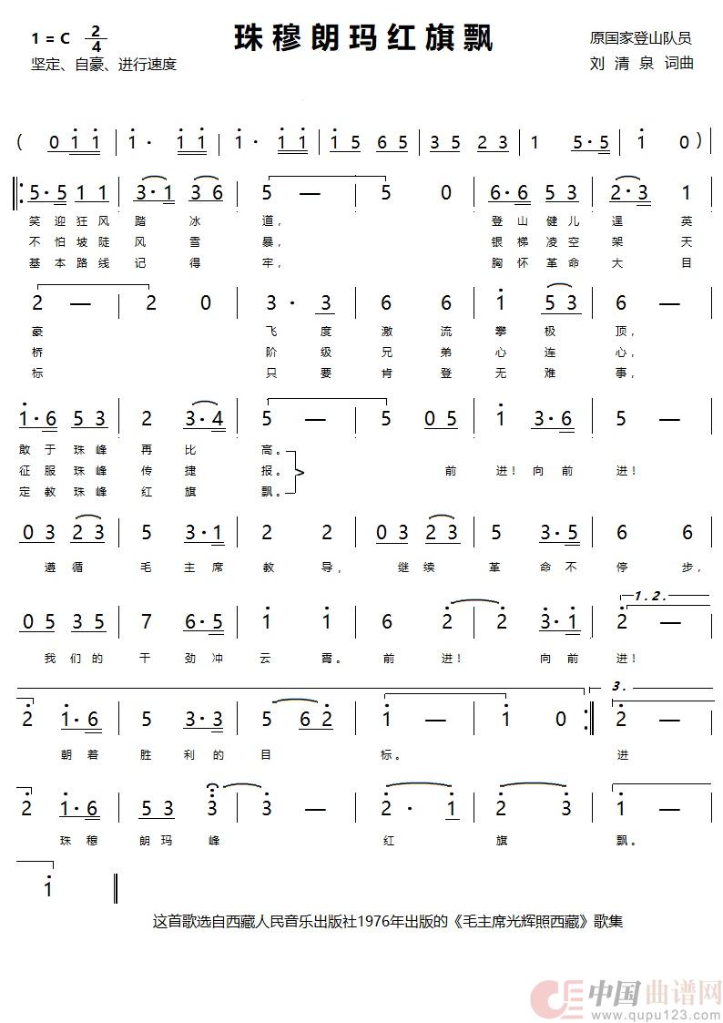 关于《珠穆朗玛红旗飘》曲谱的评论