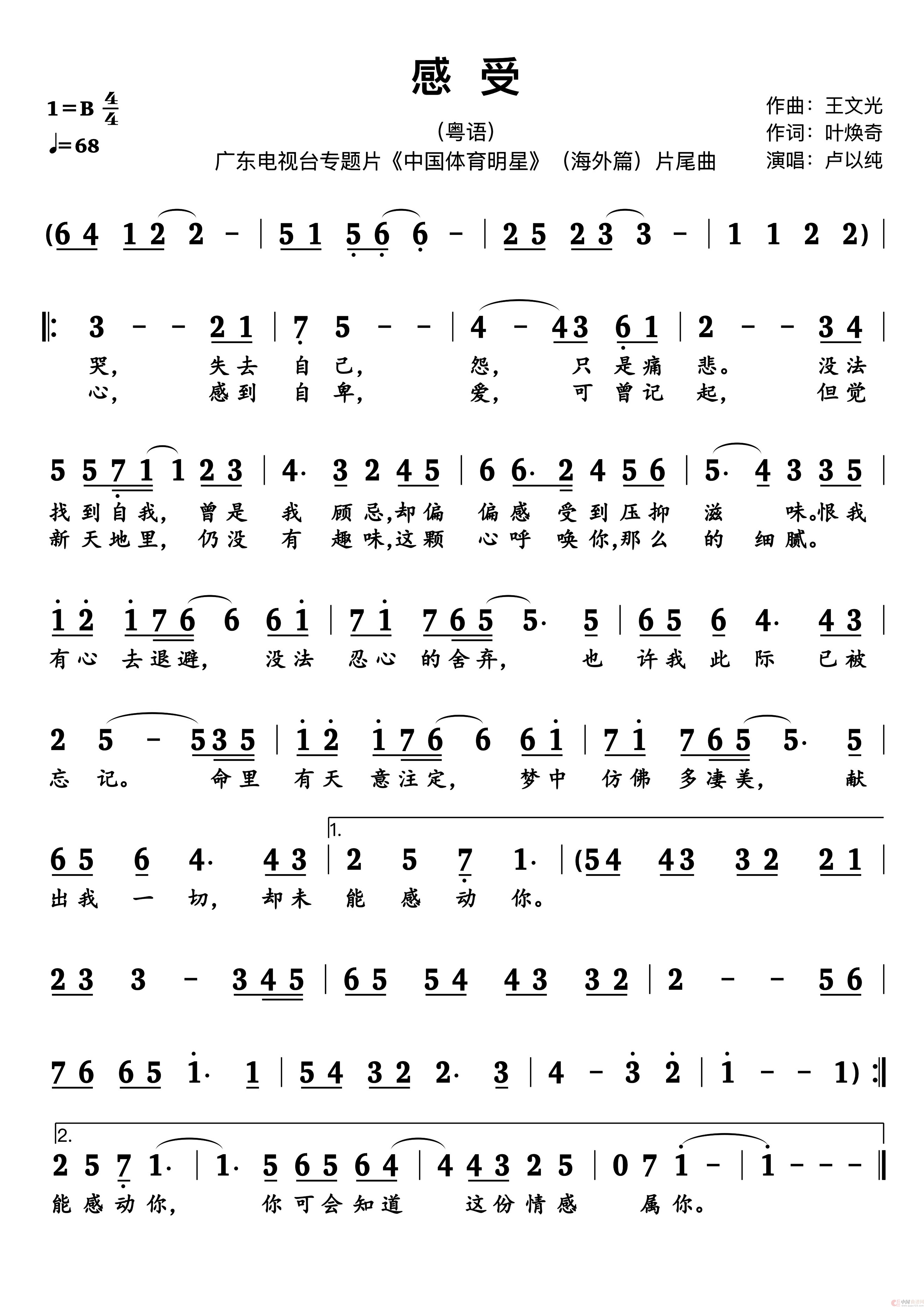 关于《感受》曲谱的评论