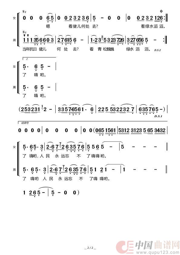 提示:在曲谱图片上单击右键,选择“图片另存为...”即可将曲谱保存到您的电脑中,打印时候可将图片插入到WORD中,调整合适大小打印即可。