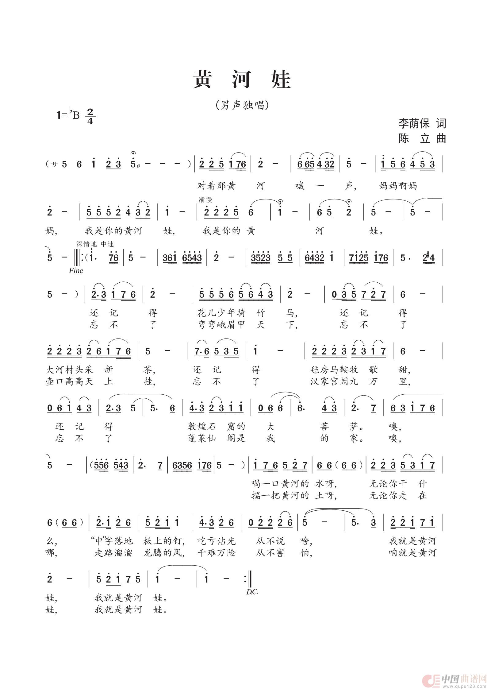 关于《黄河娃》曲谱的评论