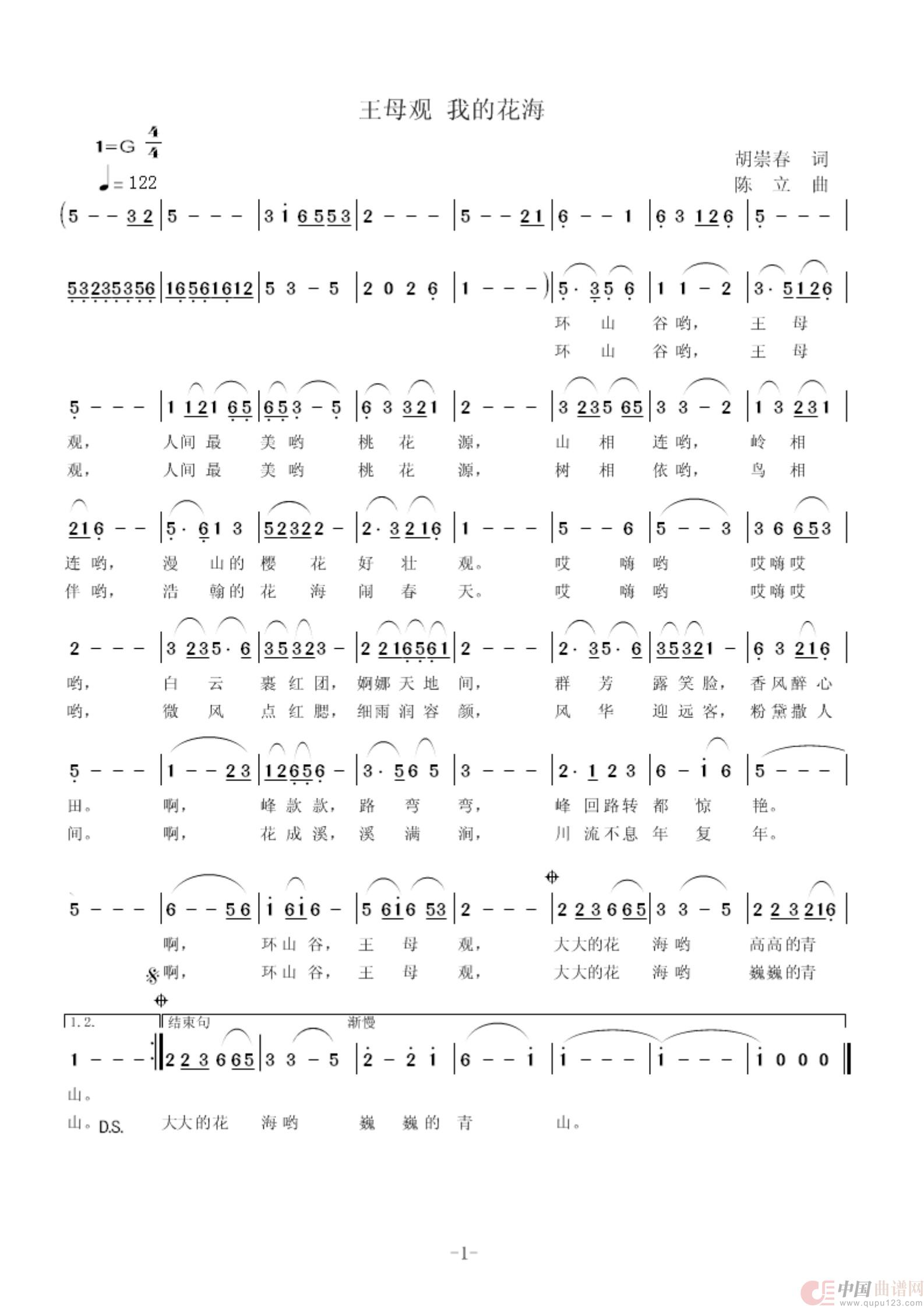 关于《王母观 我的花海》曲谱的评论