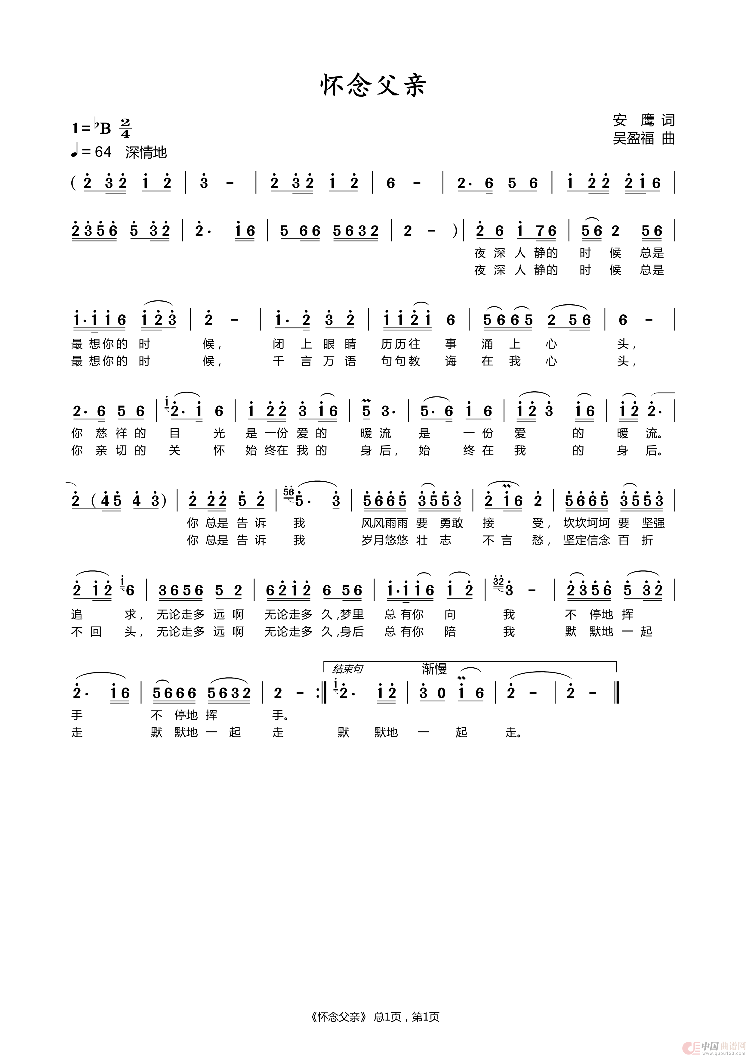 关于《怀念父亲》曲谱的评论