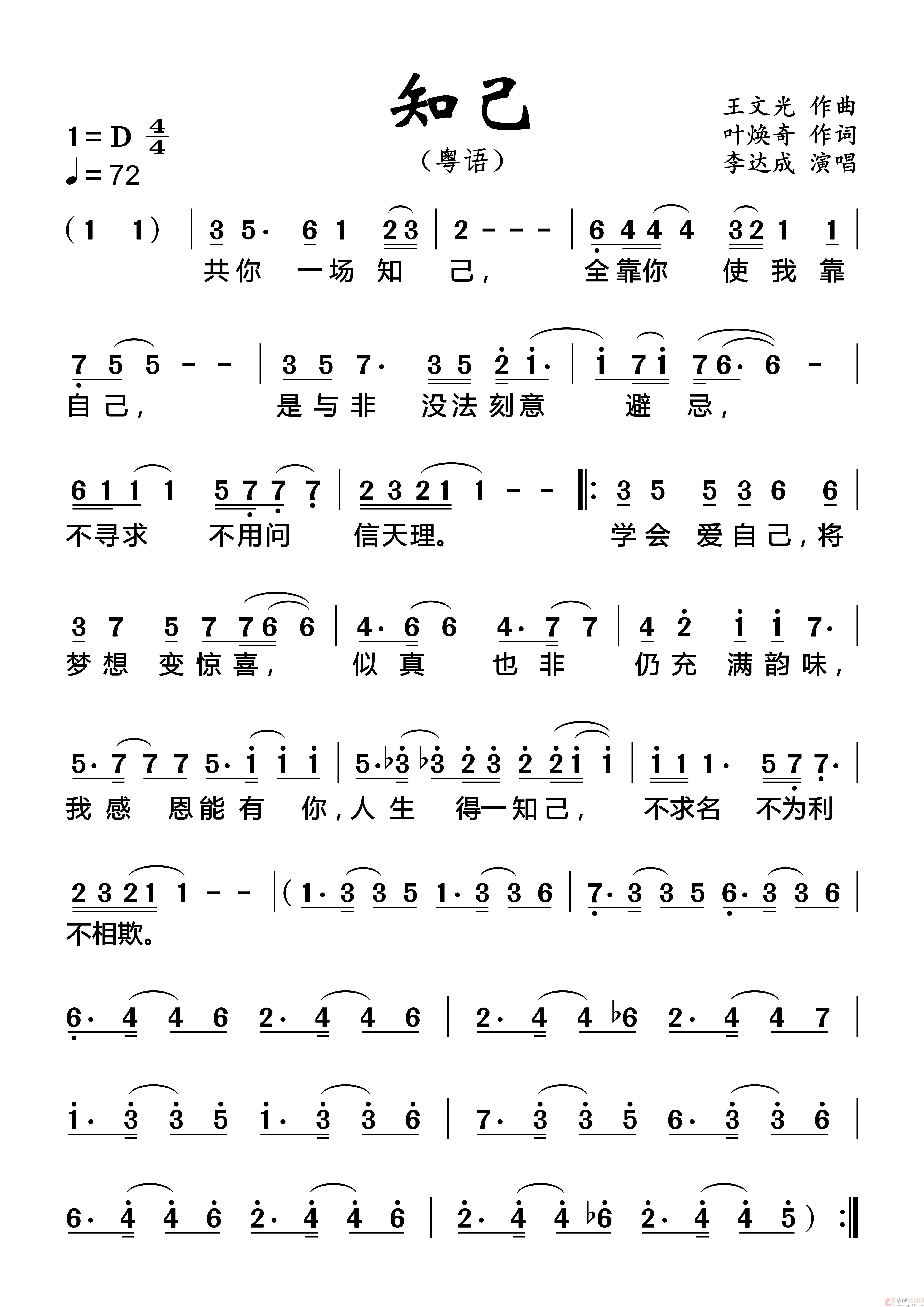 关于《知己》曲谱的评论