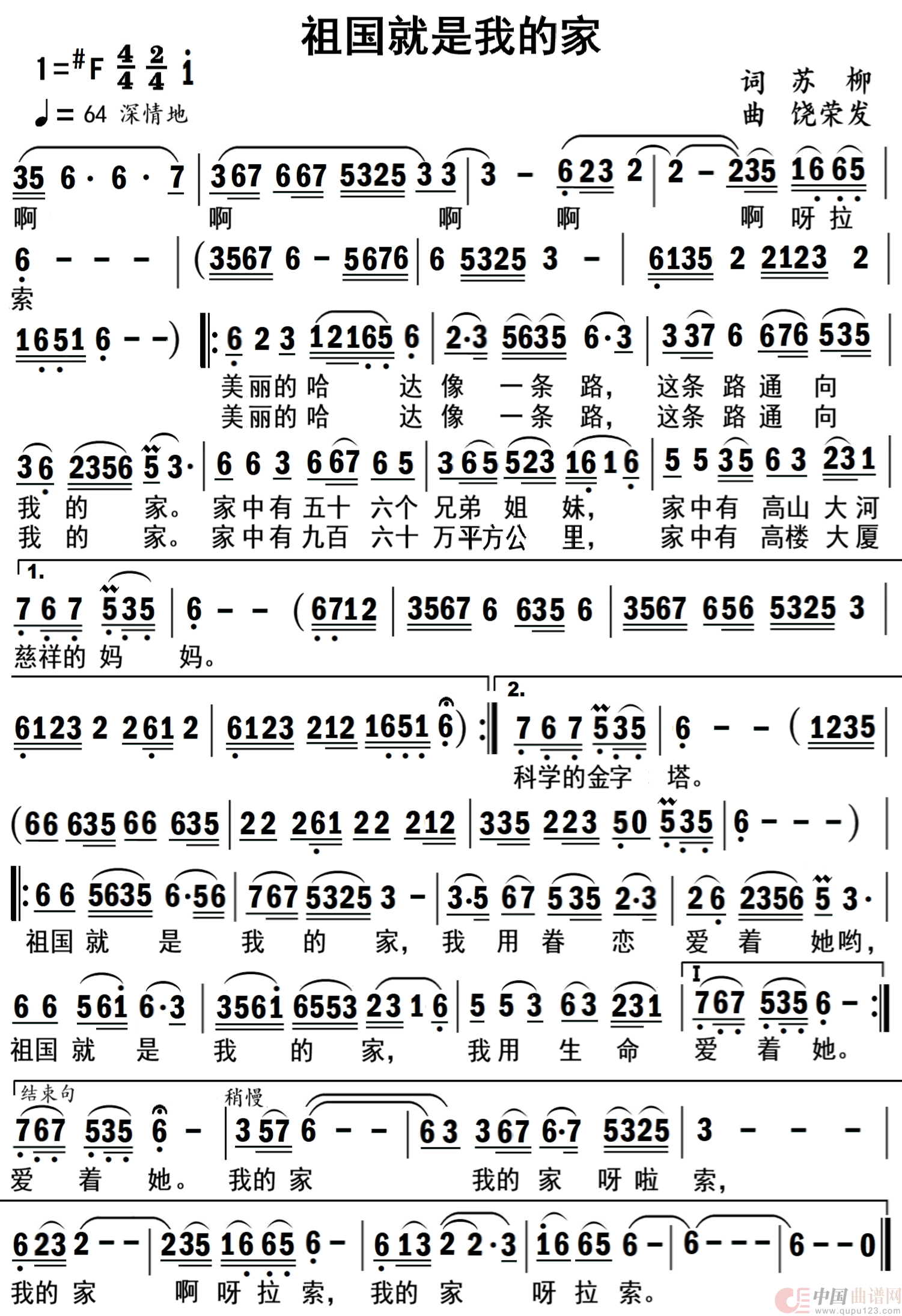 关于《祖国就是我的家》曲谱的评论