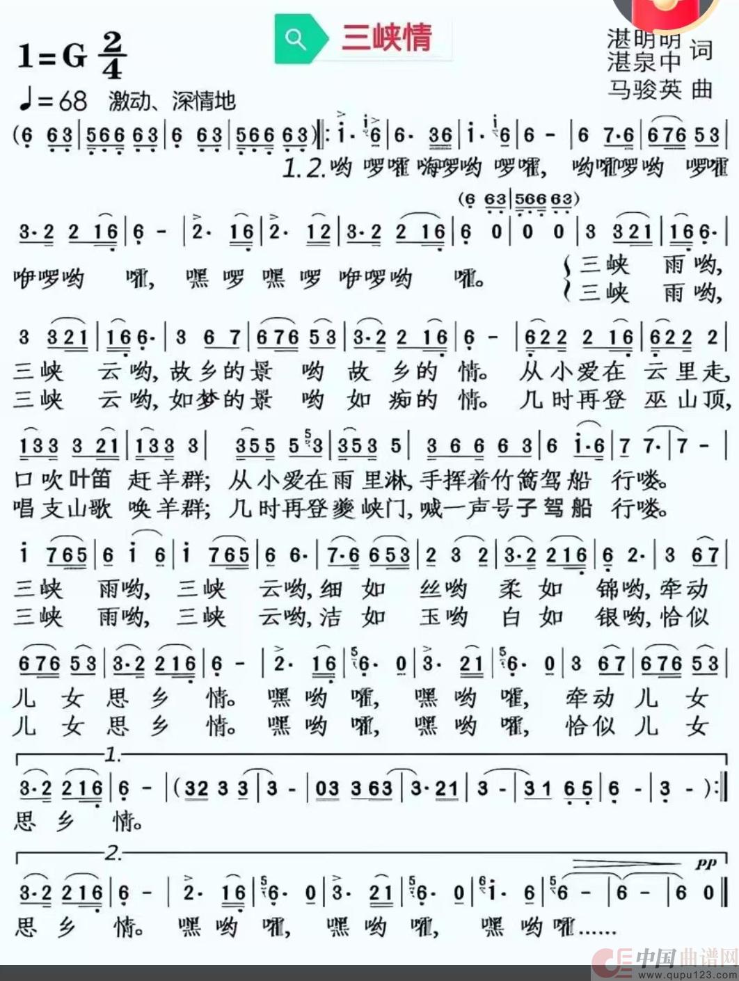 关于《三峡情》曲谱的评论