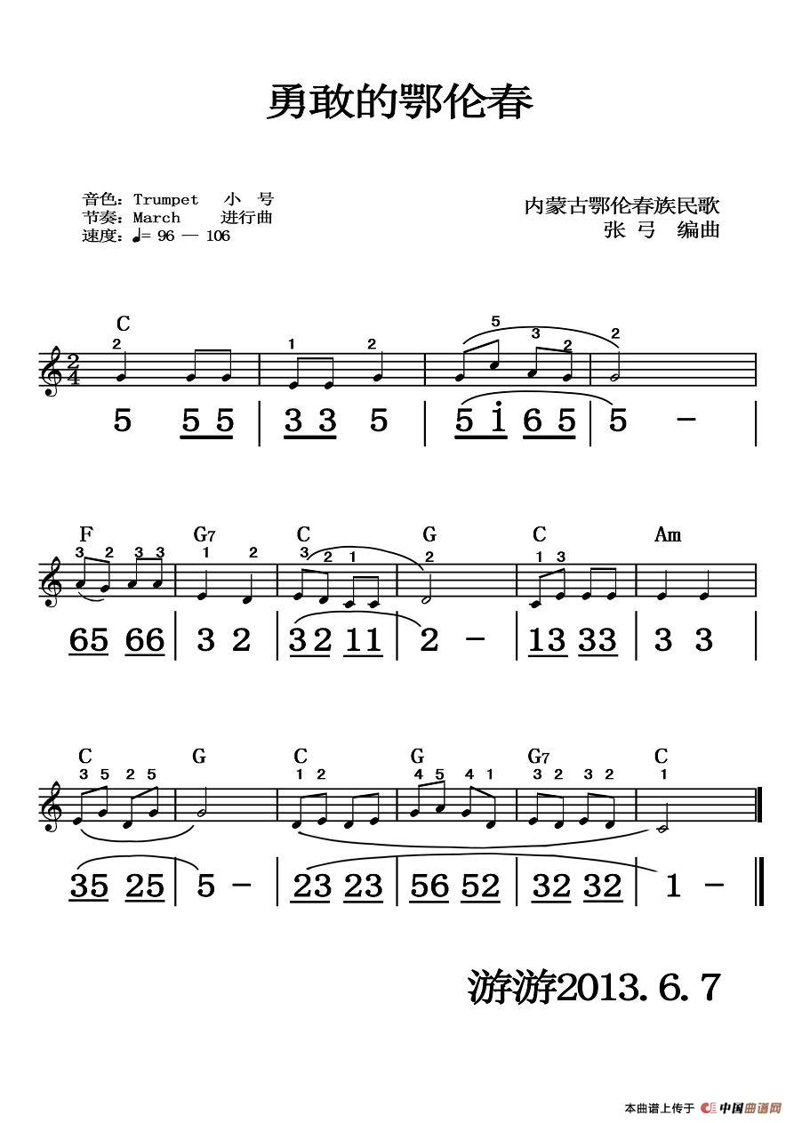 勇敢的鄂伦春(线简谱混排、游游制谱版)