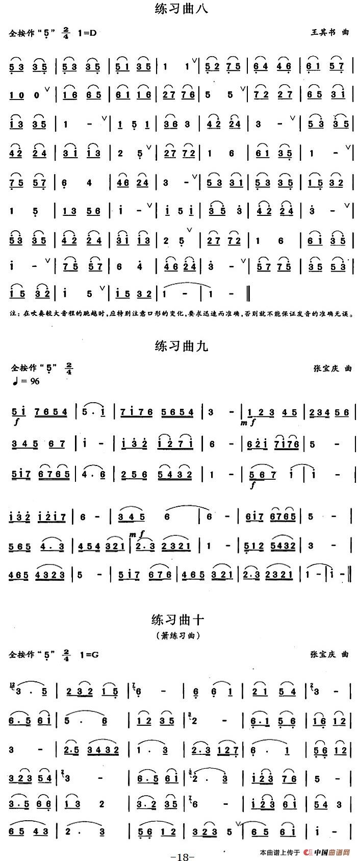笛箫三级考级曲目:练习曲(1——10)