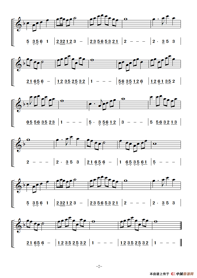 提示:在曲谱图片上单击右键,选择“图片另存为...”即可将曲谱保存到您的电脑中,打印时候可将图片插入到WORD中,调整合适大小打印即可。