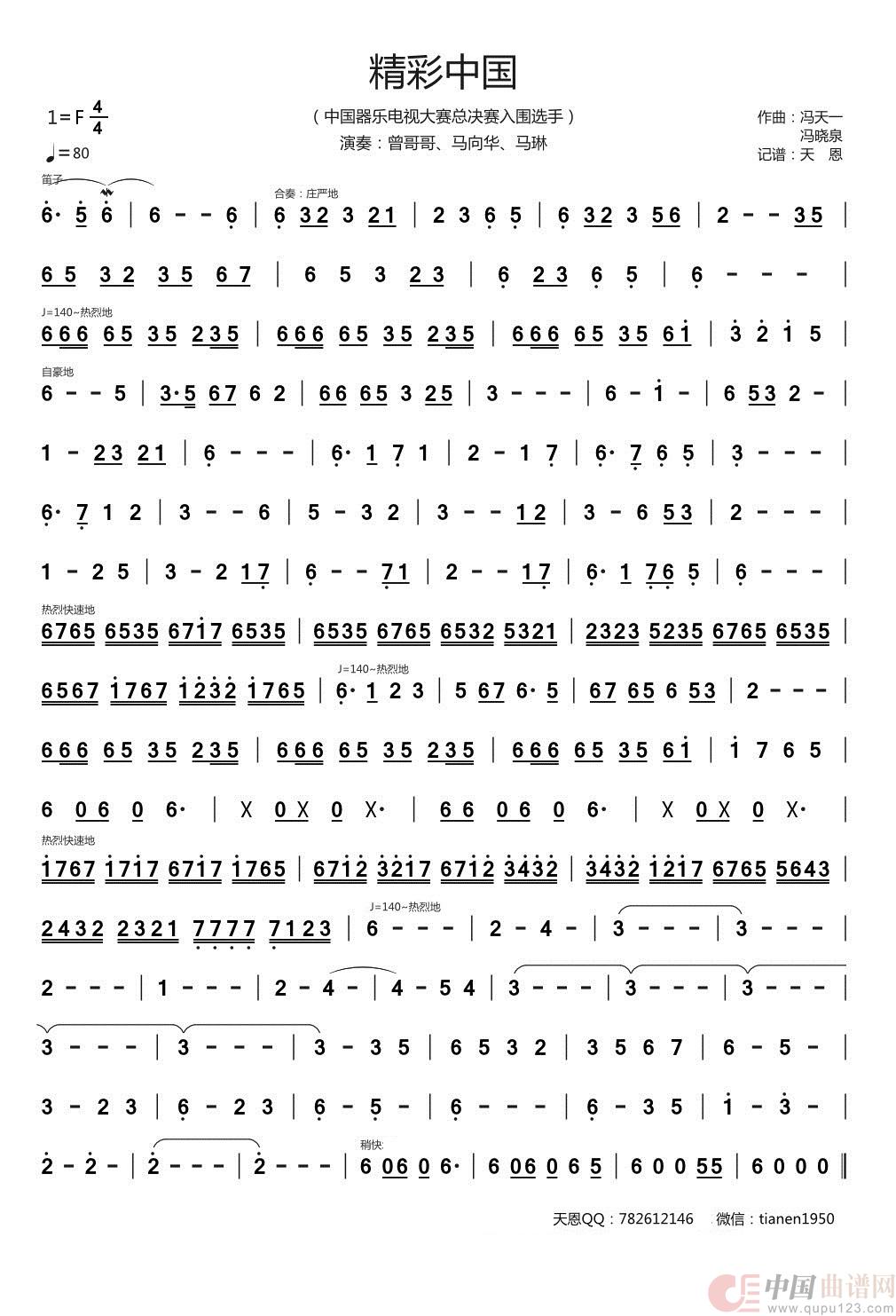作曲:冯天一/冯晓泉 演唱(奏):曾哥哥、马向华、马琳 来源:谱友天恩上传 上传:天恩