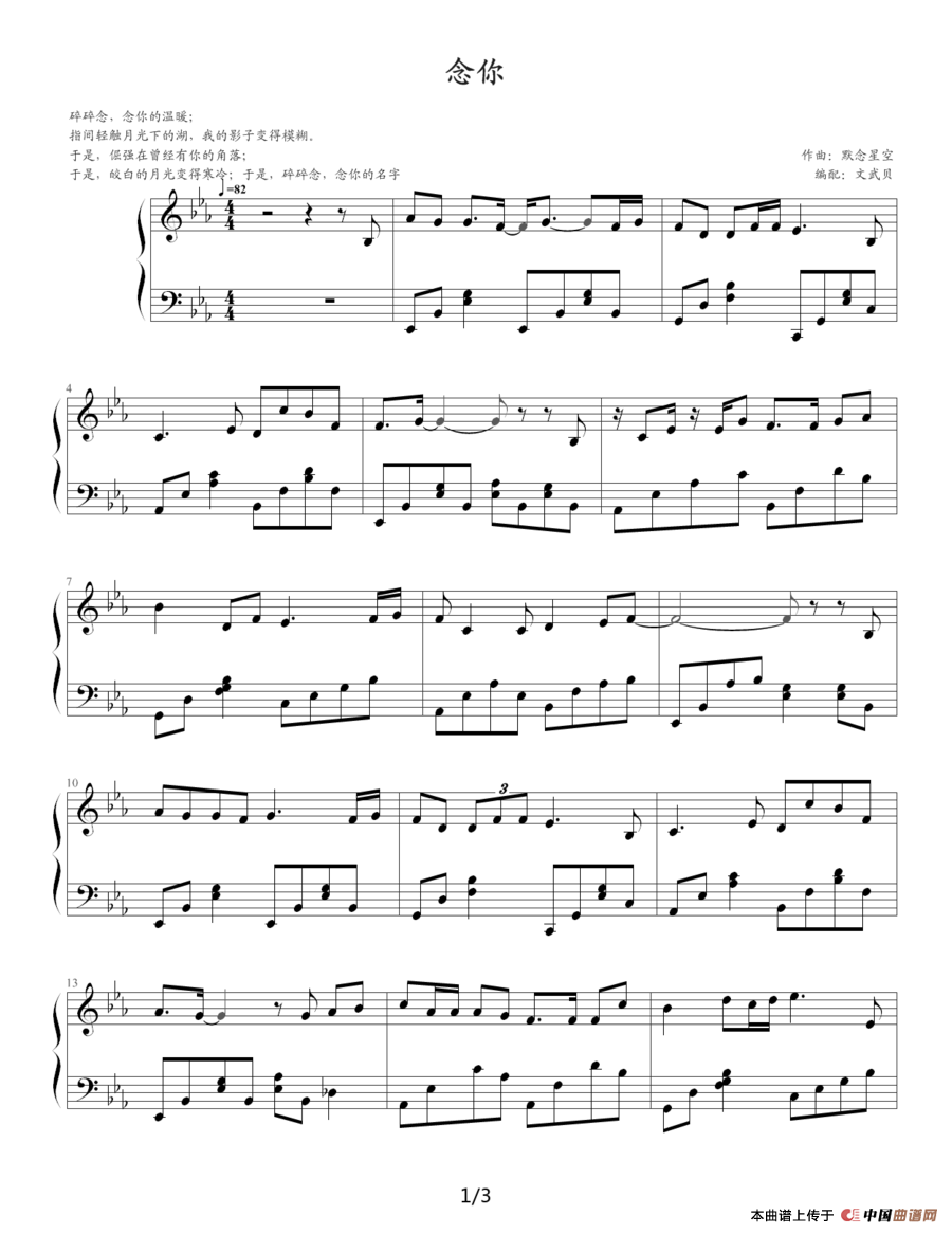 作曲:默念星空曲、文武贝编配 来源:蛐蛐钢琴网 上传:他山石