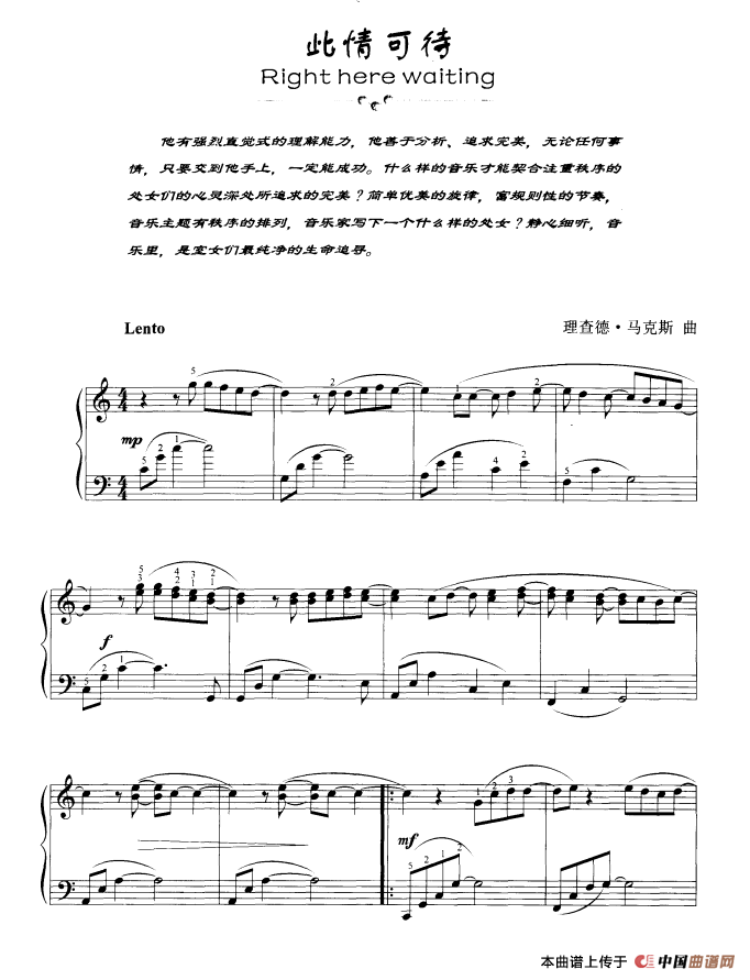 关于《此情可待(Right here waiting)》曲谱的评论