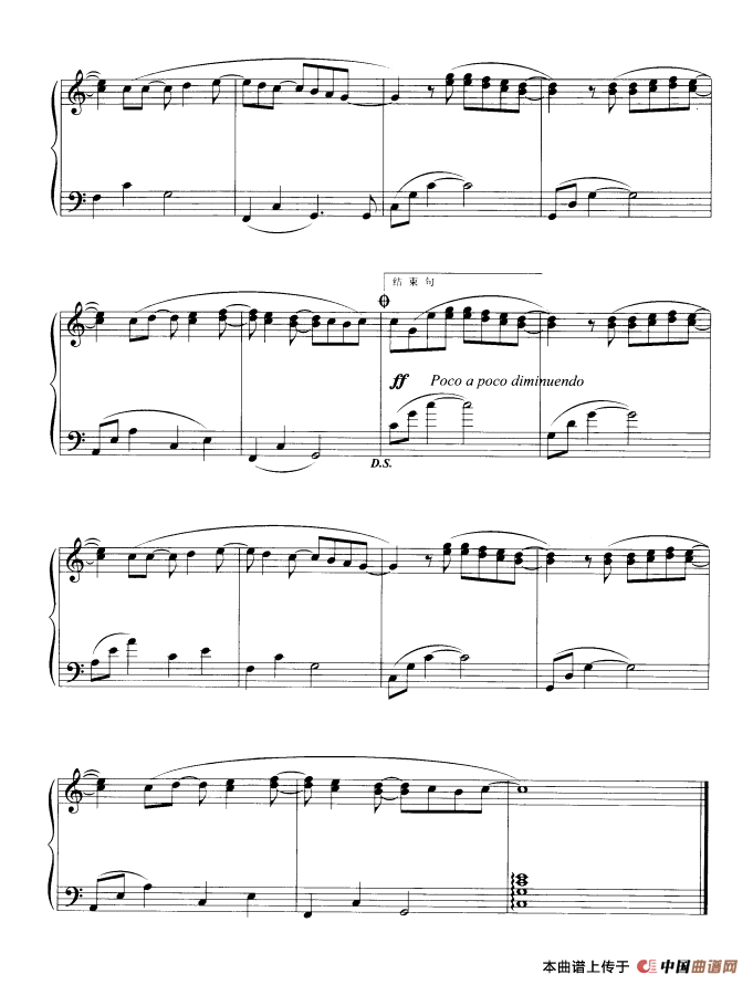 提示:在曲谱图片上单击右键,选择“图片另存为...”即可将曲谱保存到您的电脑中,打印时候可将图片插入到WORD中,调整合适大小打印即可。