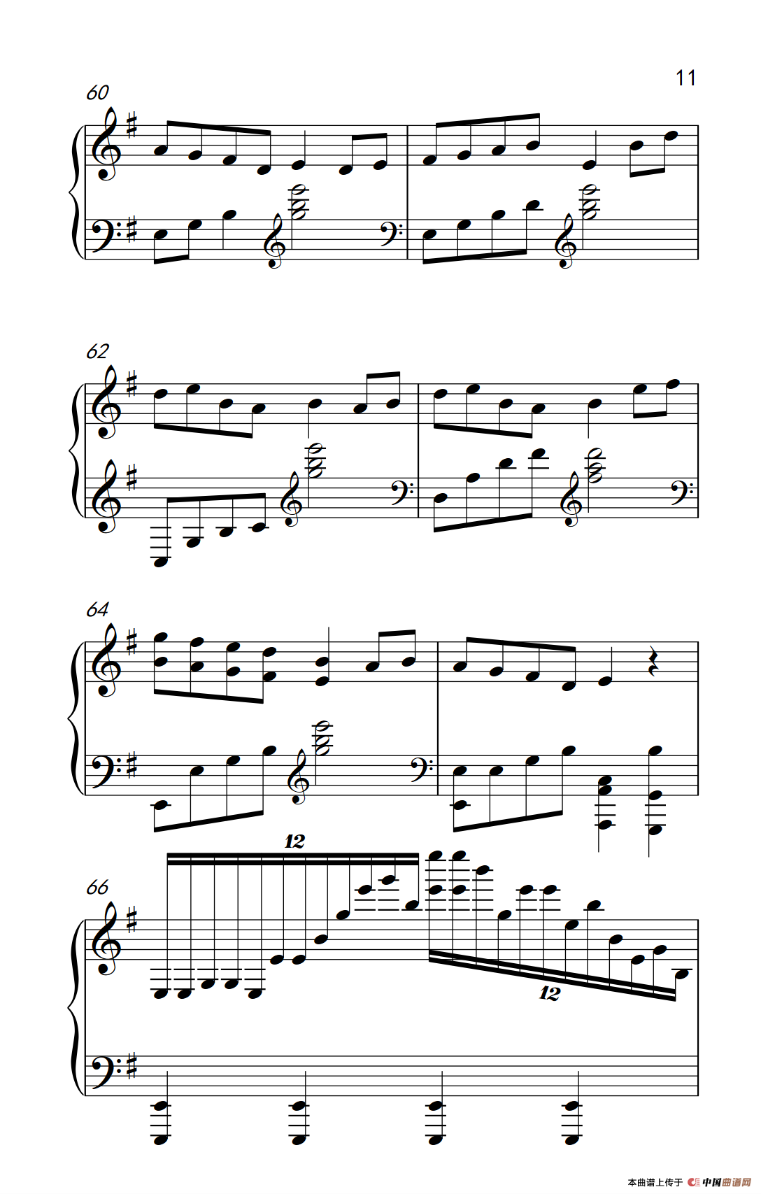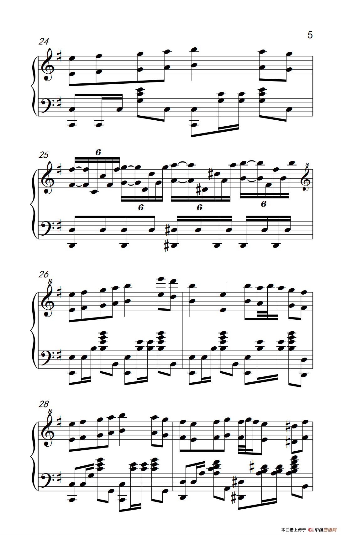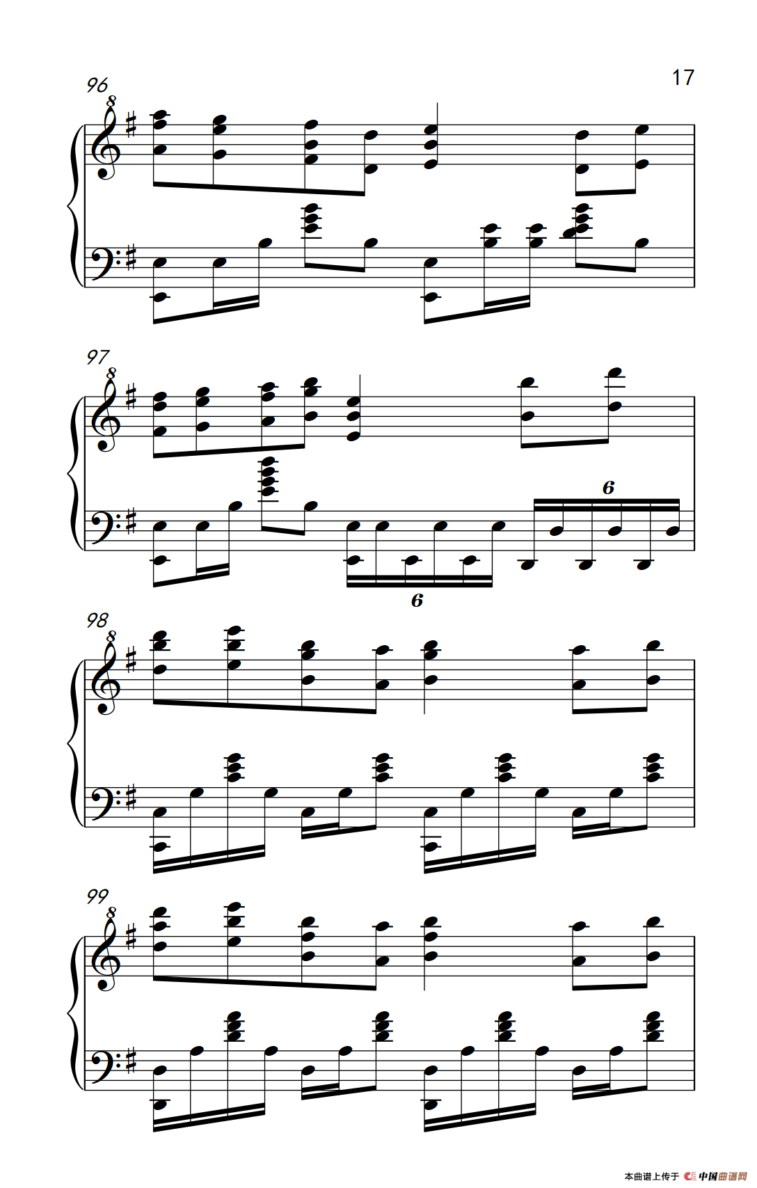 提示:在曲谱图片上单击右键,选择“图片另存为...”即可将曲谱保存到您的电脑中,打印时候可将图片插入到WORD中,调整合适大小打印即可。