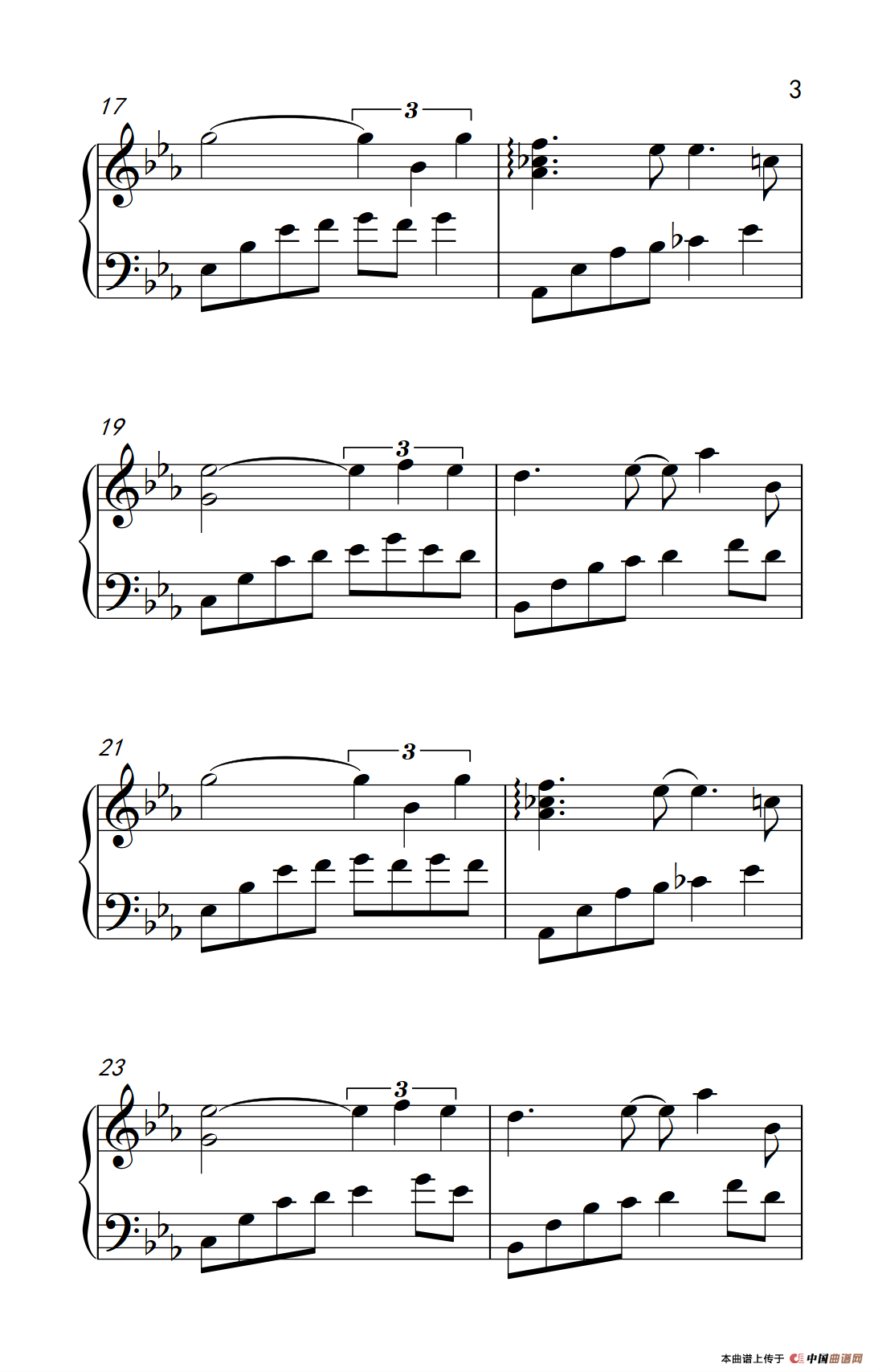 提示:在曲谱图片上单击右键,选择“图片另存为...”即可将曲谱保存到您的电脑中,打印时候可将图片插入到WORD中,调整合适大小打印即可。