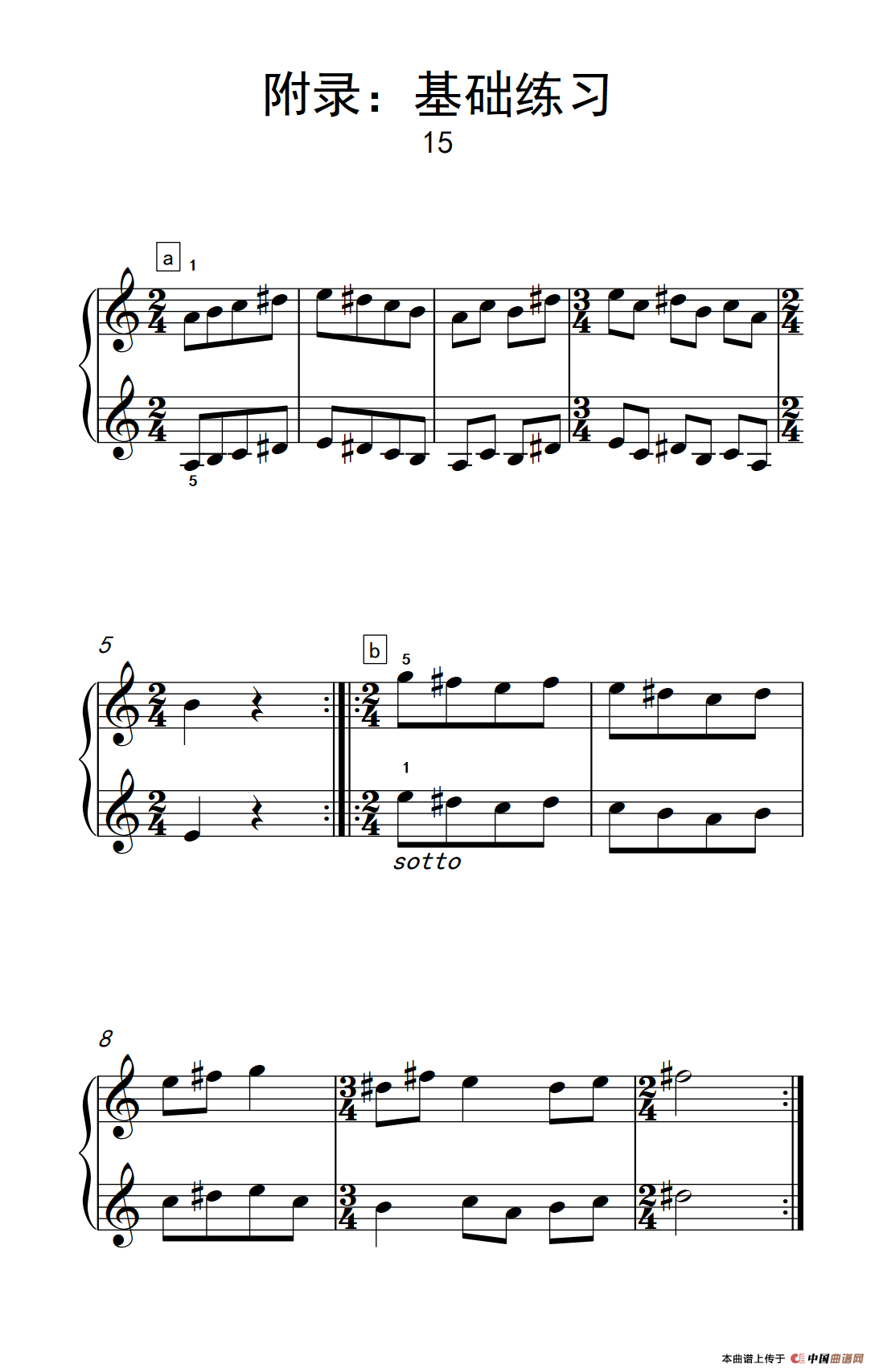 附录:基础练习 15(巴托克 小宇宙 钢琴教程 2)