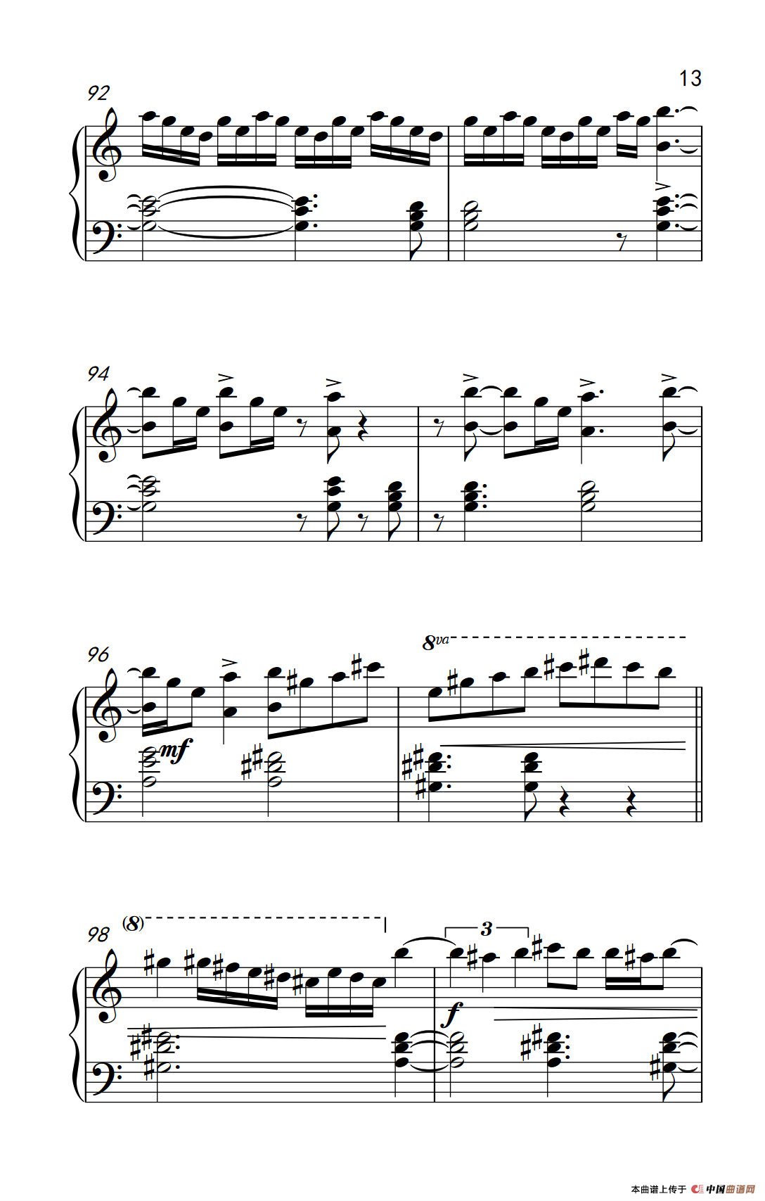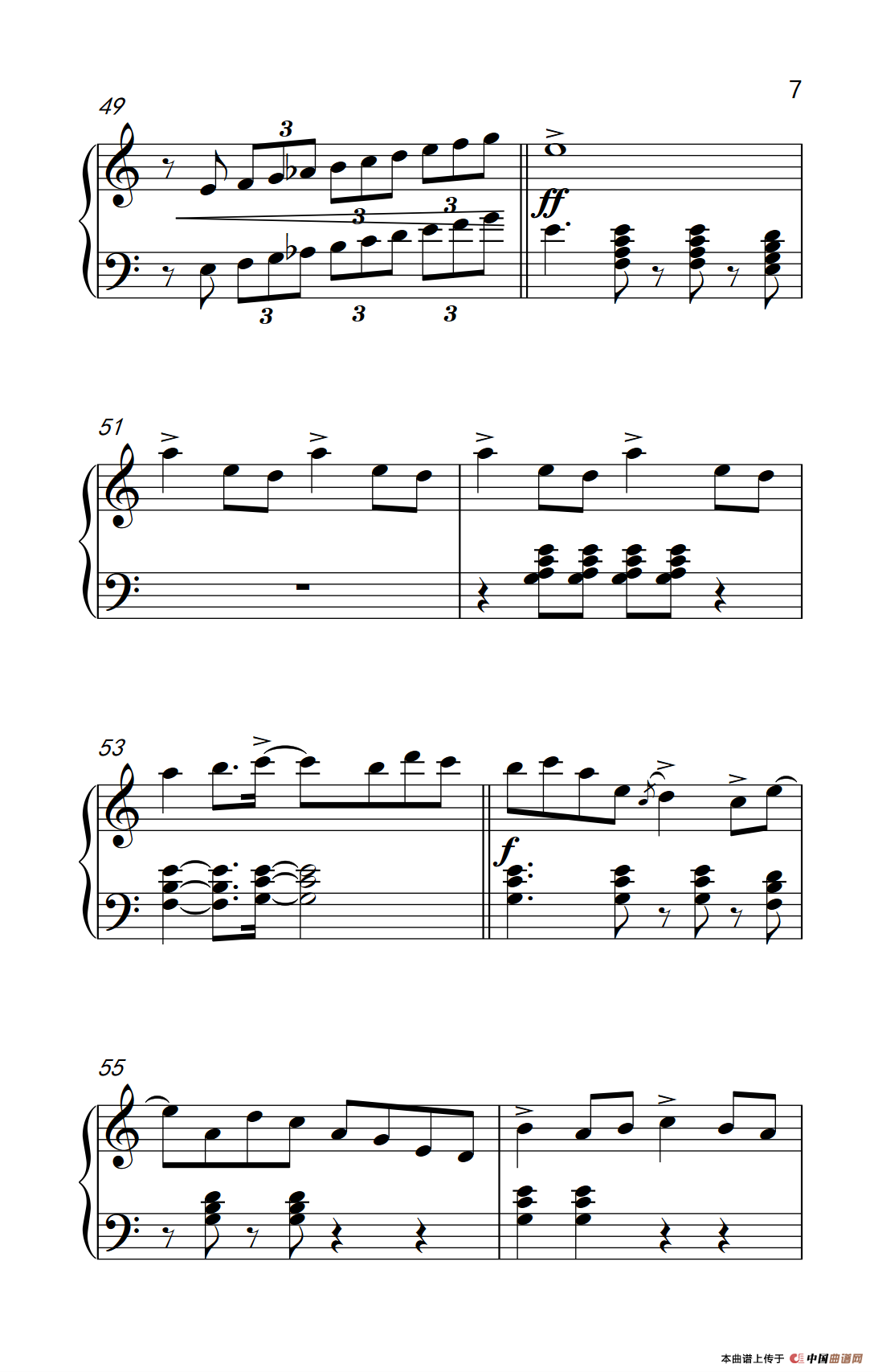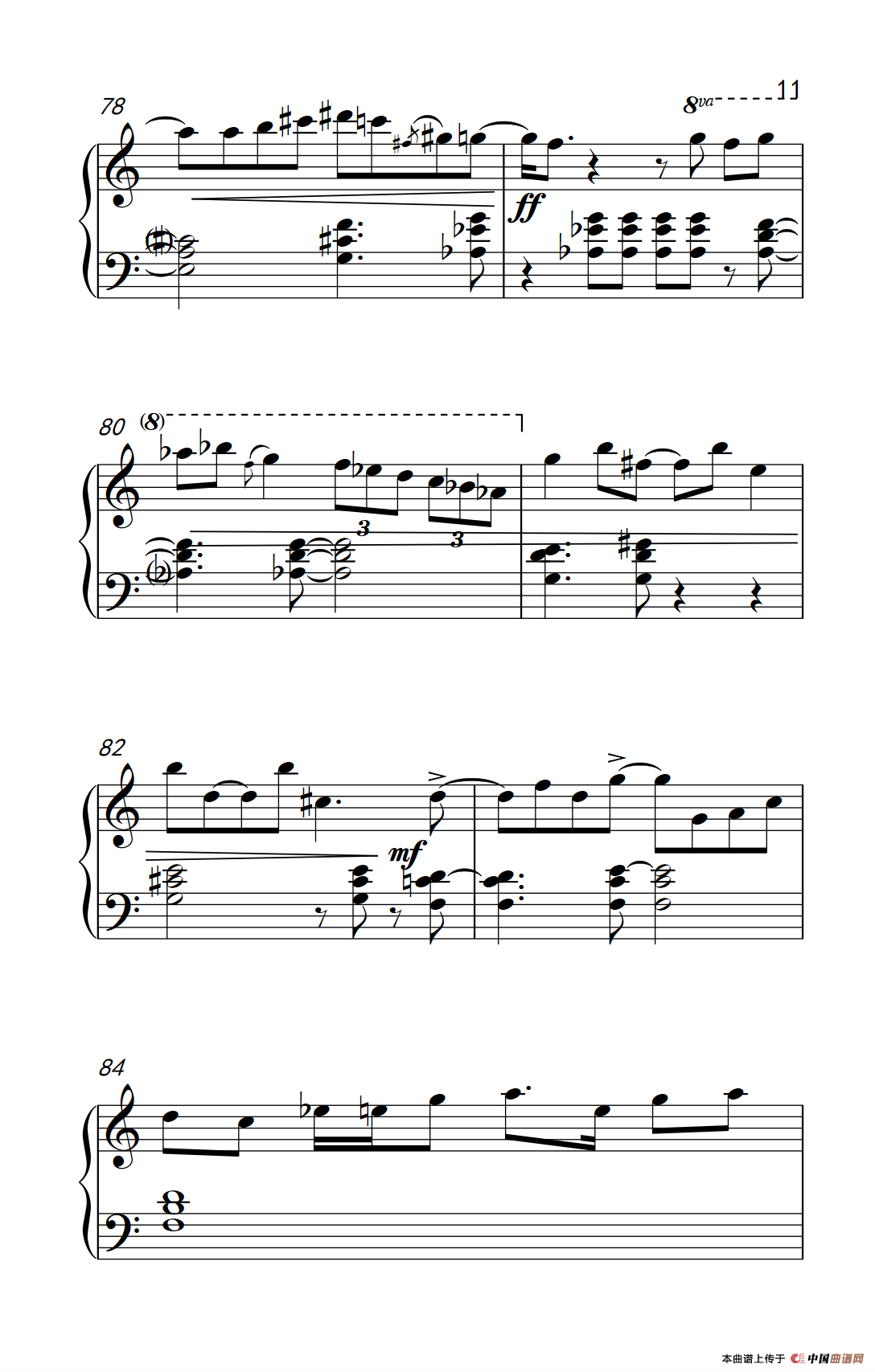 提示:在曲谱图片上单击右键,选择“图片另存为...”即可将曲谱保存到您的电脑中,打印时候可将图片插入到WORD中,调整合适大小打印即可。