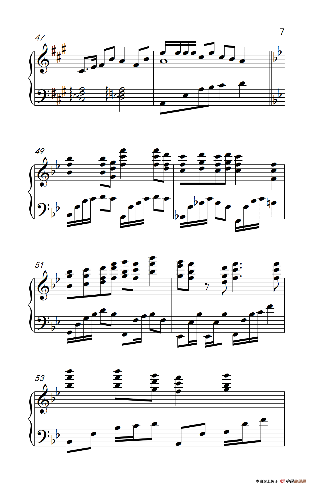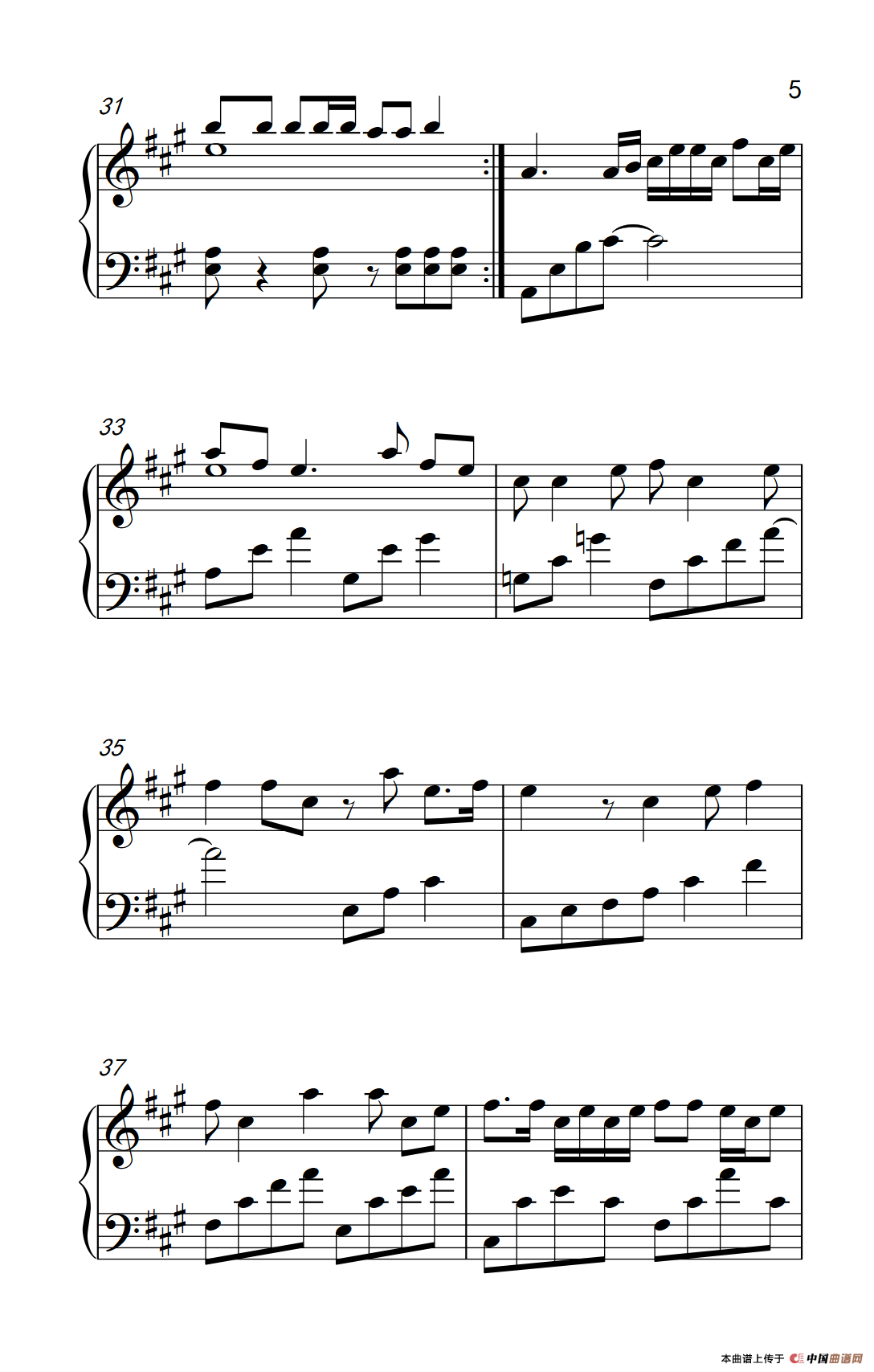 提示:在曲谱图片上单击右键,选择“图片另存为...”即可将曲谱保存到您的电脑中,打印时候可将图片插入到WORD中,调整合适大小打印即可。