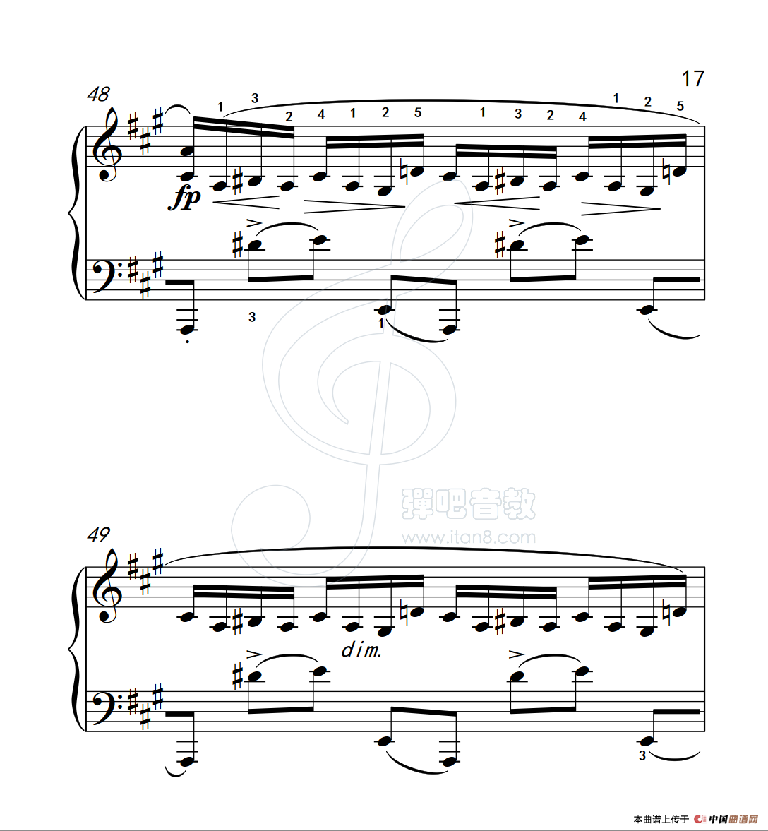 提示:在曲谱图片上单击右键,选择“图片另存为...”即可将曲谱保存到您的电脑中,打印时候可将图片插入到WORD中,调整合适大小打印即可。