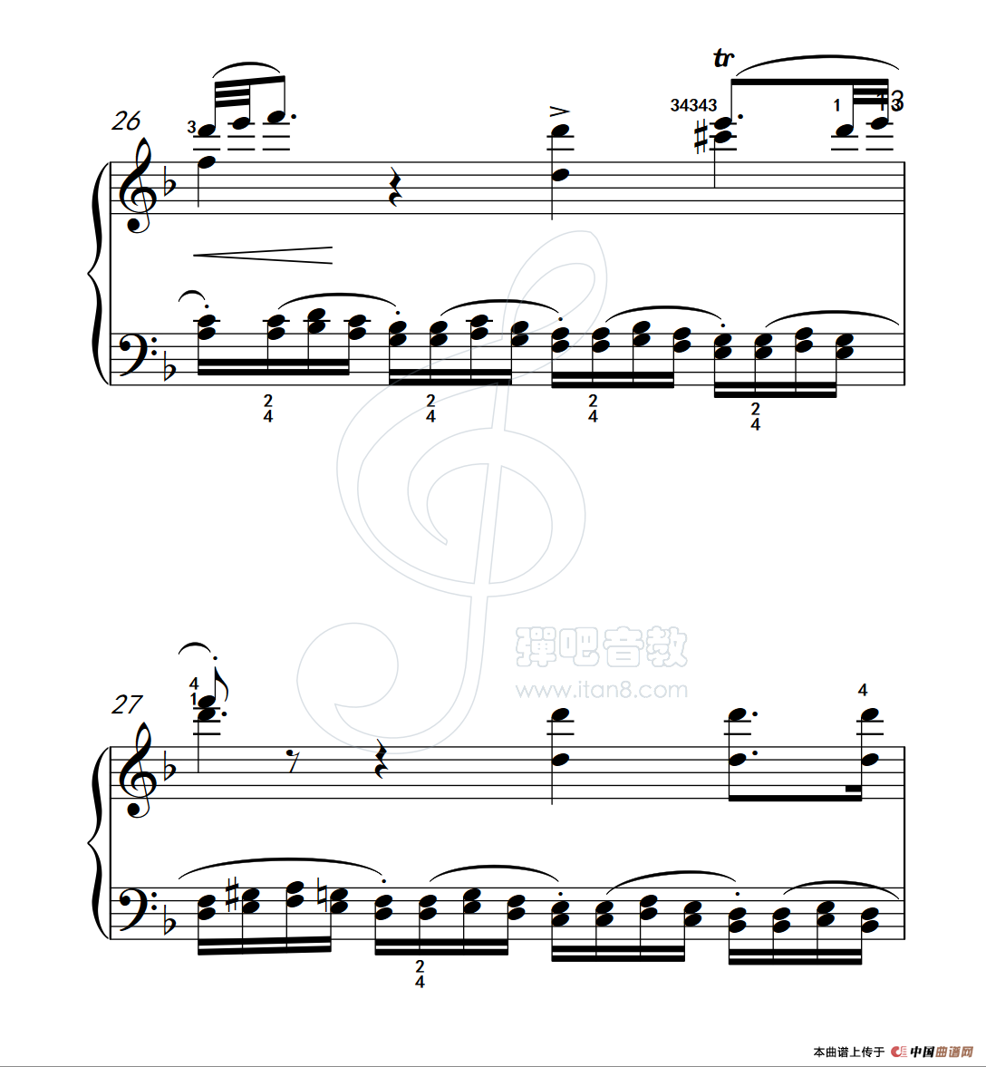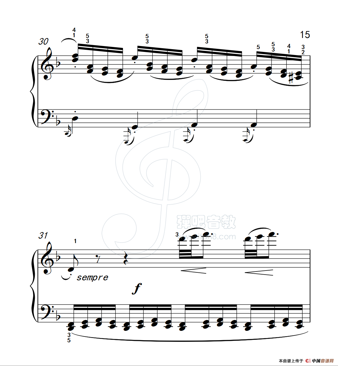 提示:在曲谱图片上单击右键,选择“图片另存为...”即可将曲谱保存到您的电脑中,打印时候可将图片插入到WORD中,调整合适大小打印即可。