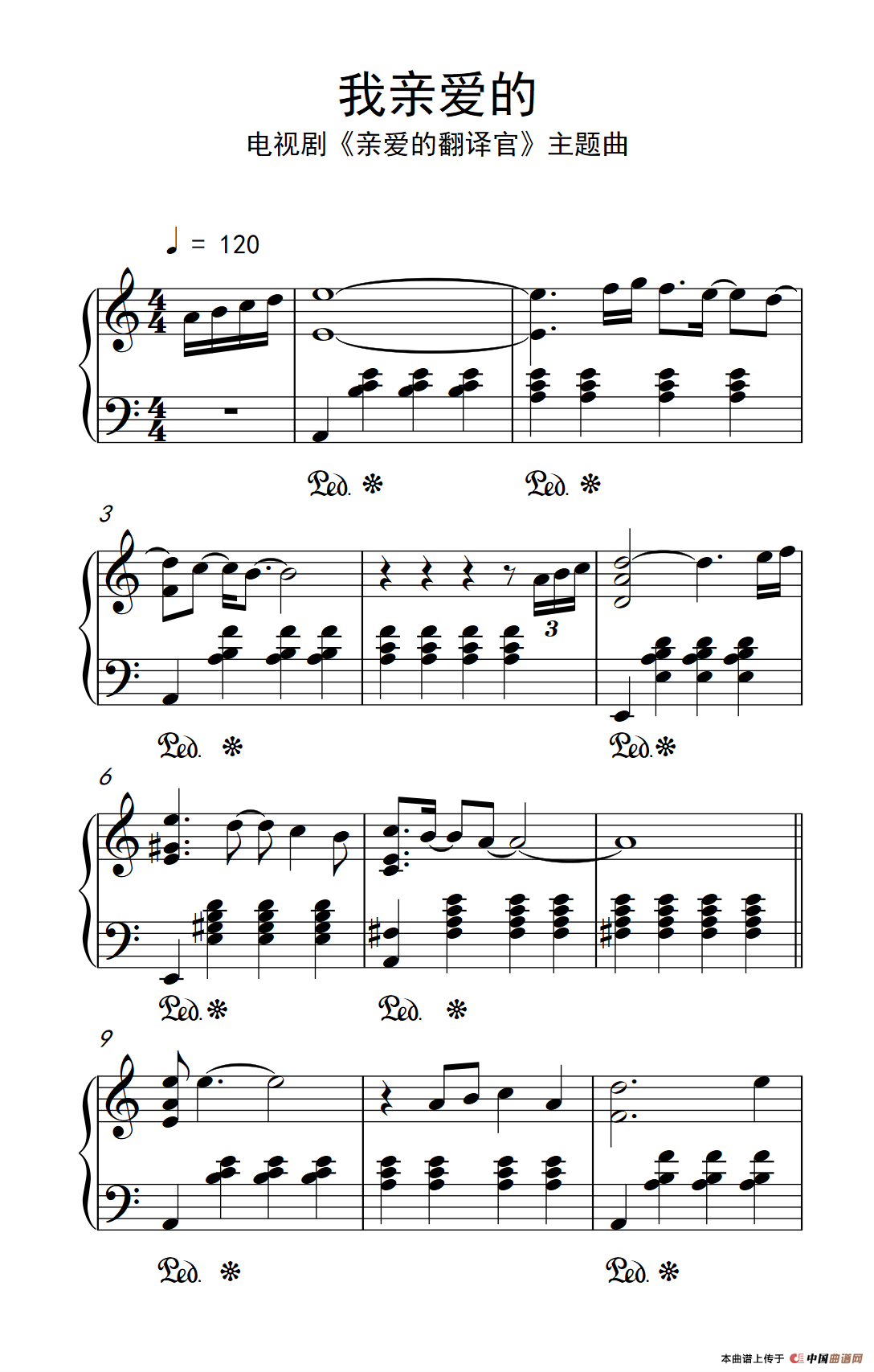 关于《我亲爱的》曲谱的评论