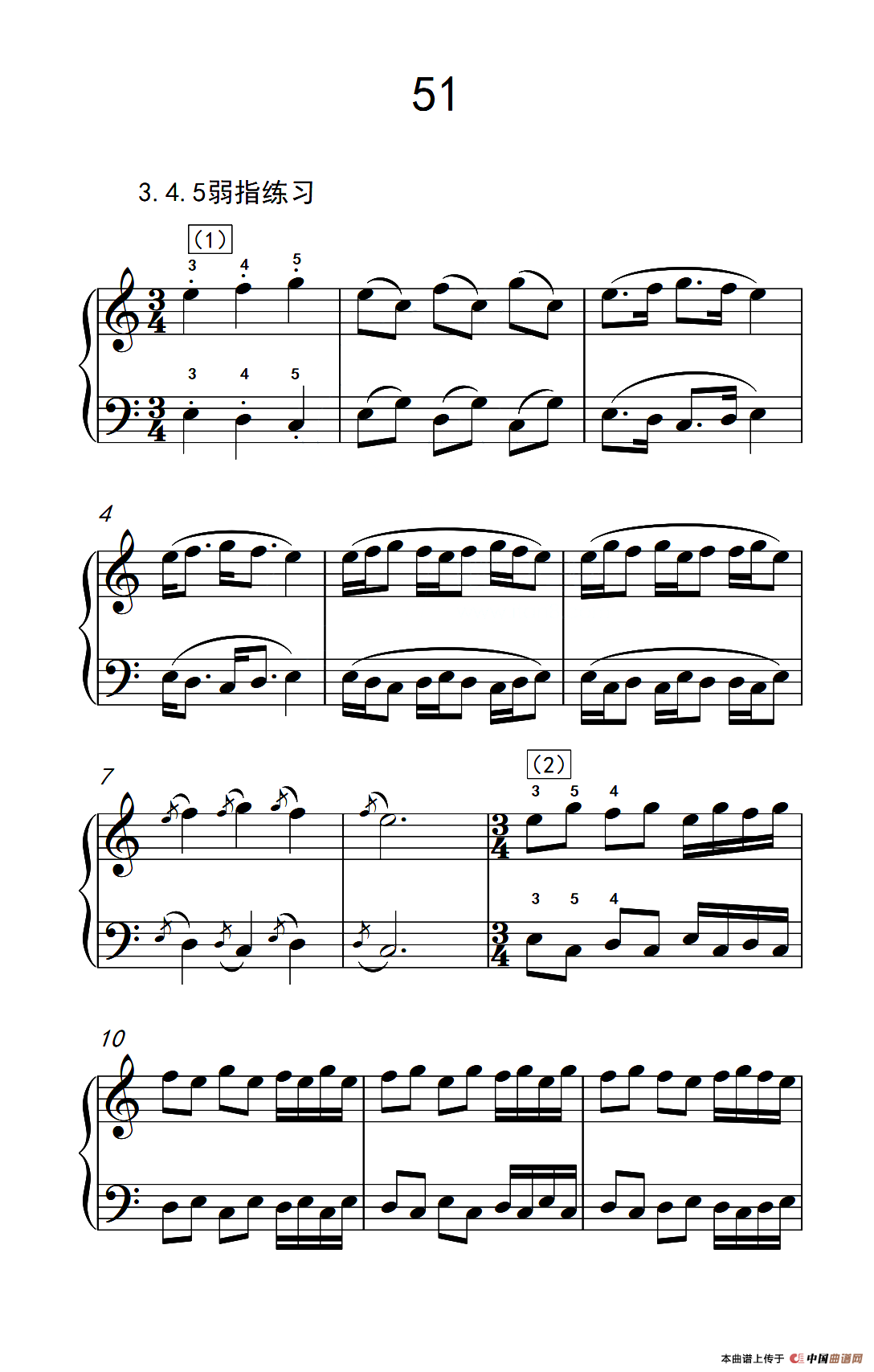 3 4 5 弱指练习 51(儿童钢琴手指练习 2)