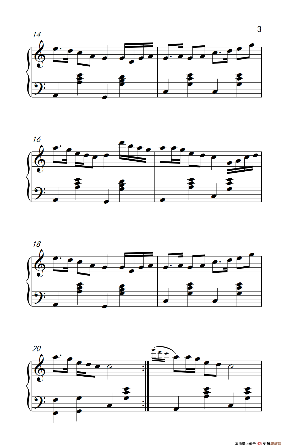 提示:在曲谱图片上单击右键,选择“图片另存为...”即可将曲谱保存到您的电脑中,打印时候可将图片插入到WORD中,调整合适大小打印即可。