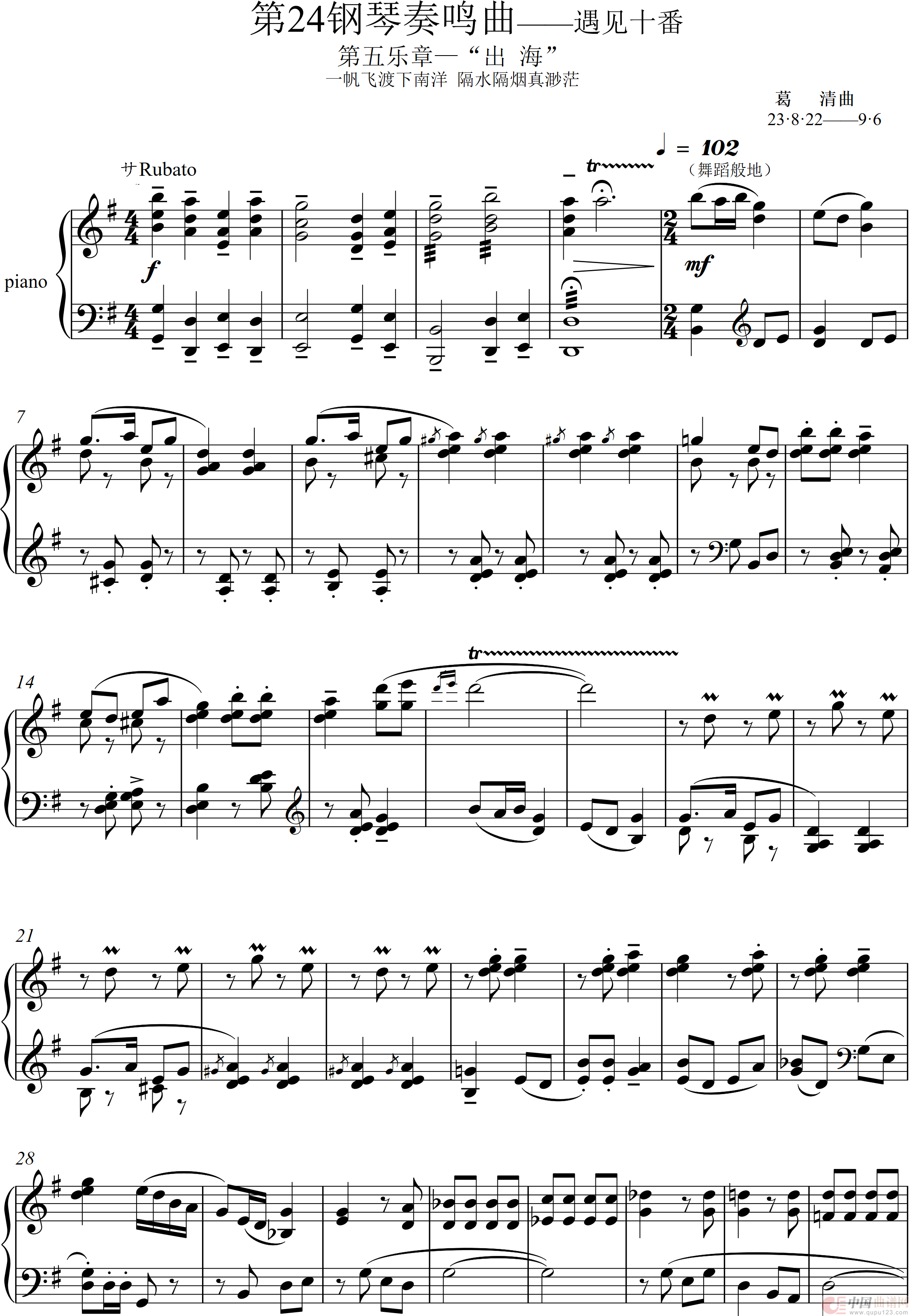 第六钢琴奏鸣曲2012年9月11日—2012年9月30日单乐章