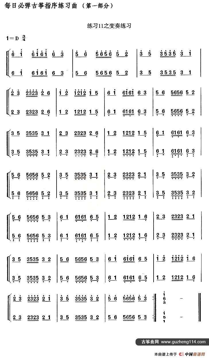 每日必弹古筝指序练习曲(第一部分·11·变奏练习)