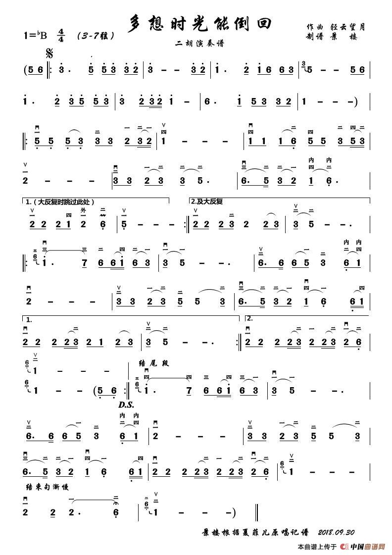 多想时光能倒回(二胡演奏谱)