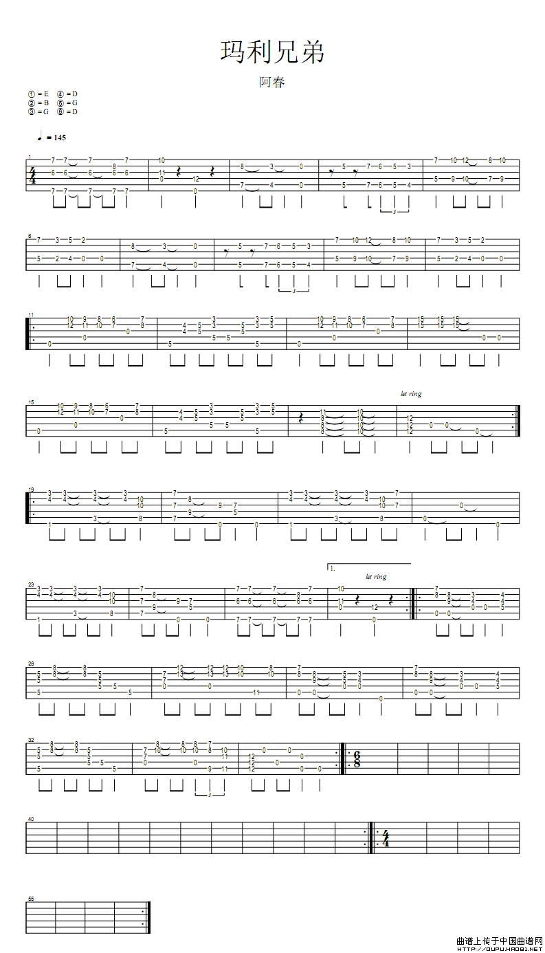 格式:六线吉他谱 来源:转自《缘分吉他》 上传:徜徉