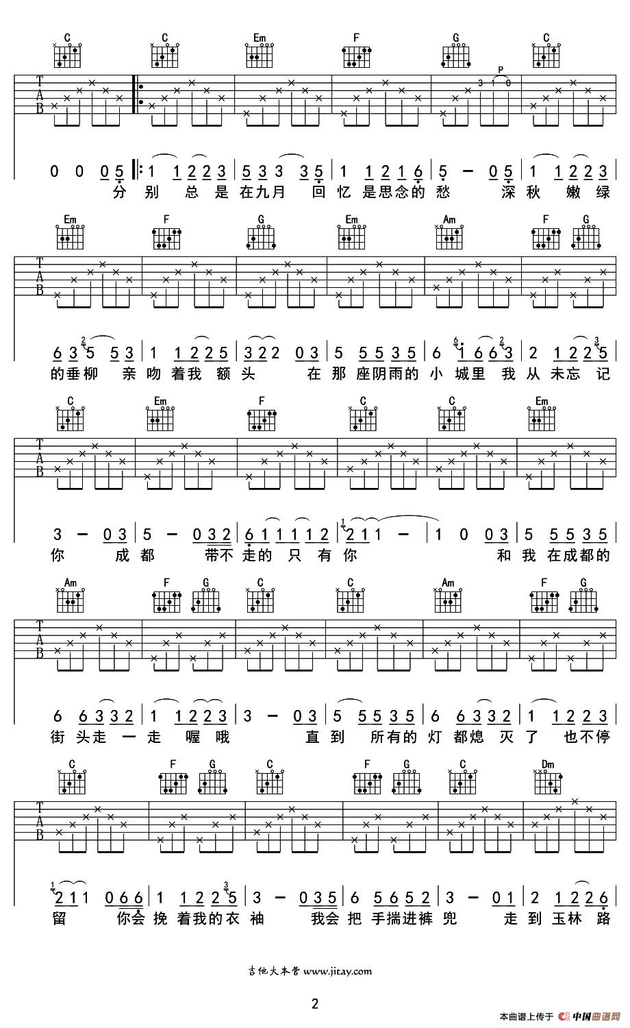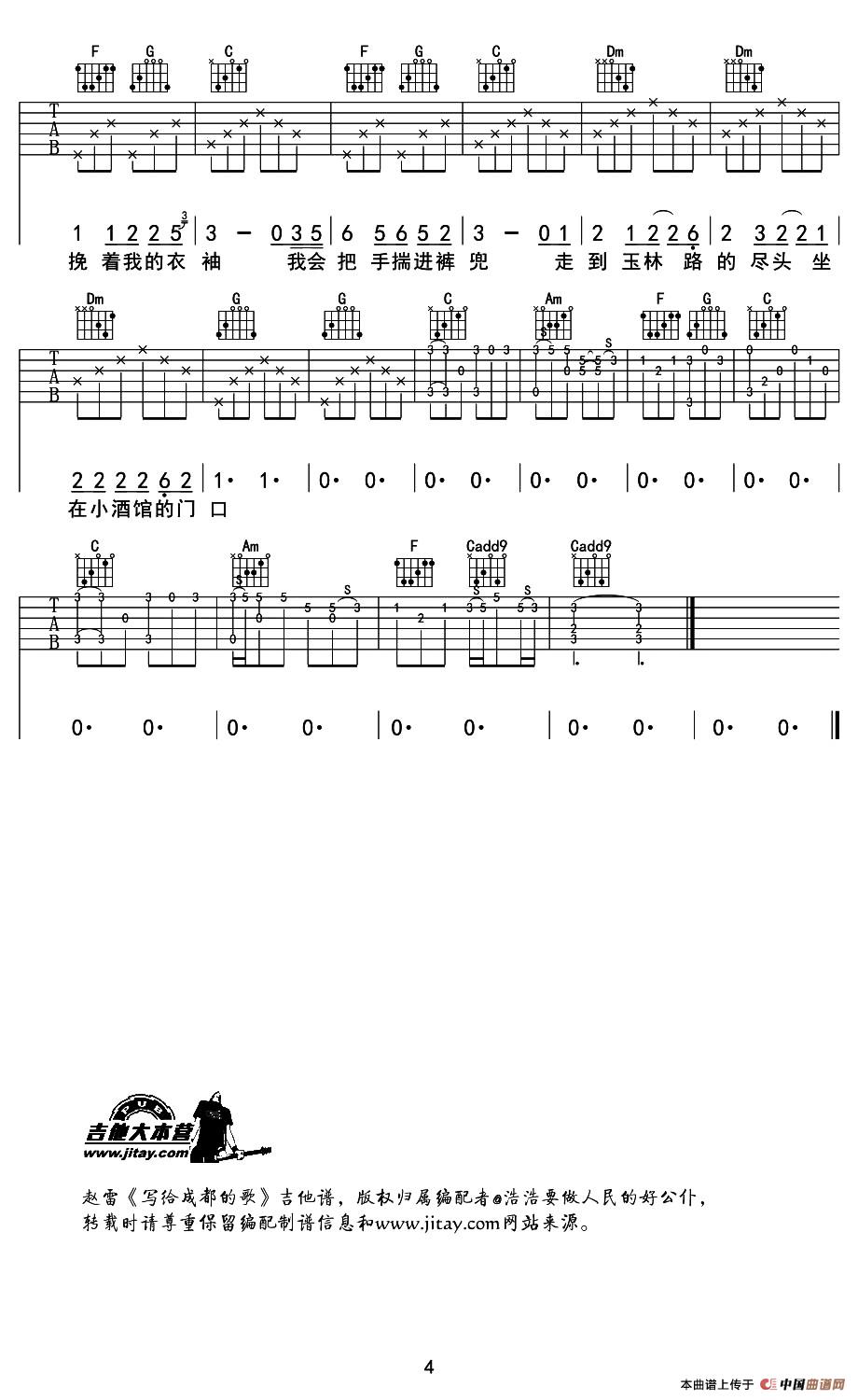 关于《写给成都的歌》曲谱的评论