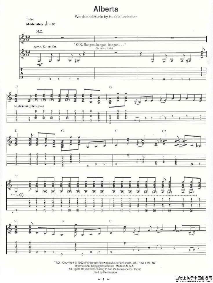 关于《Alberta》曲谱的评论