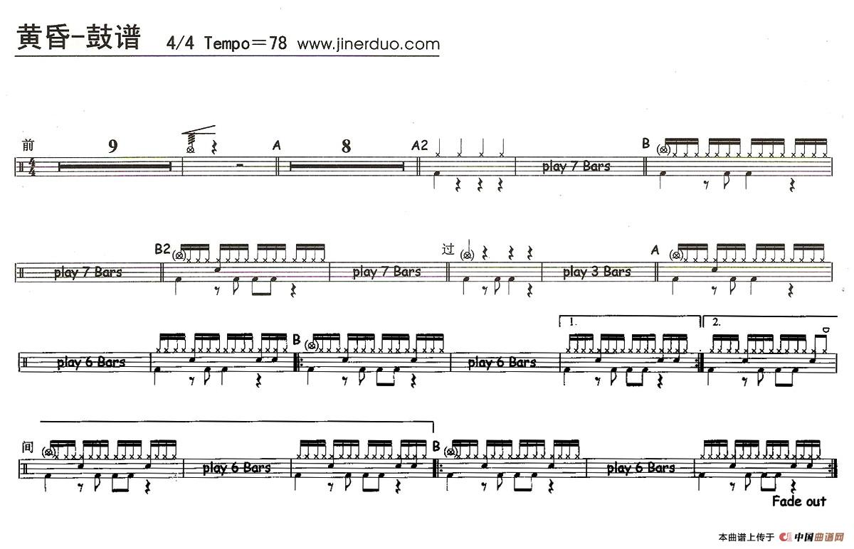 黄昏(架子鼓谱)