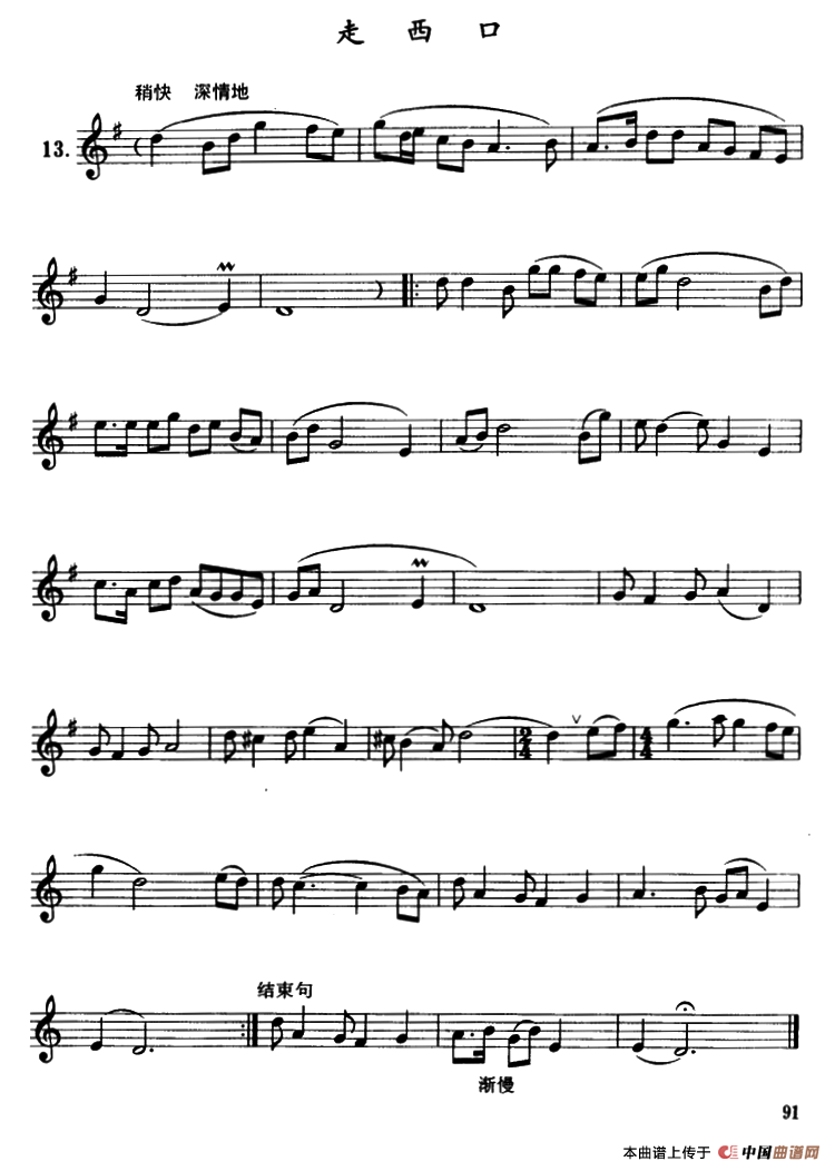 关于《走西口》曲谱的评论