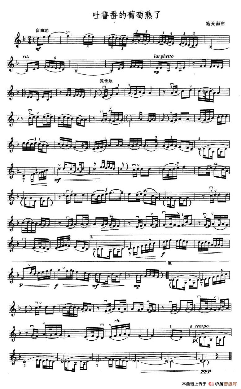 当前位置: 首页 器乐乐谱 提琴乐谱 吐鲁番的葡萄熟了