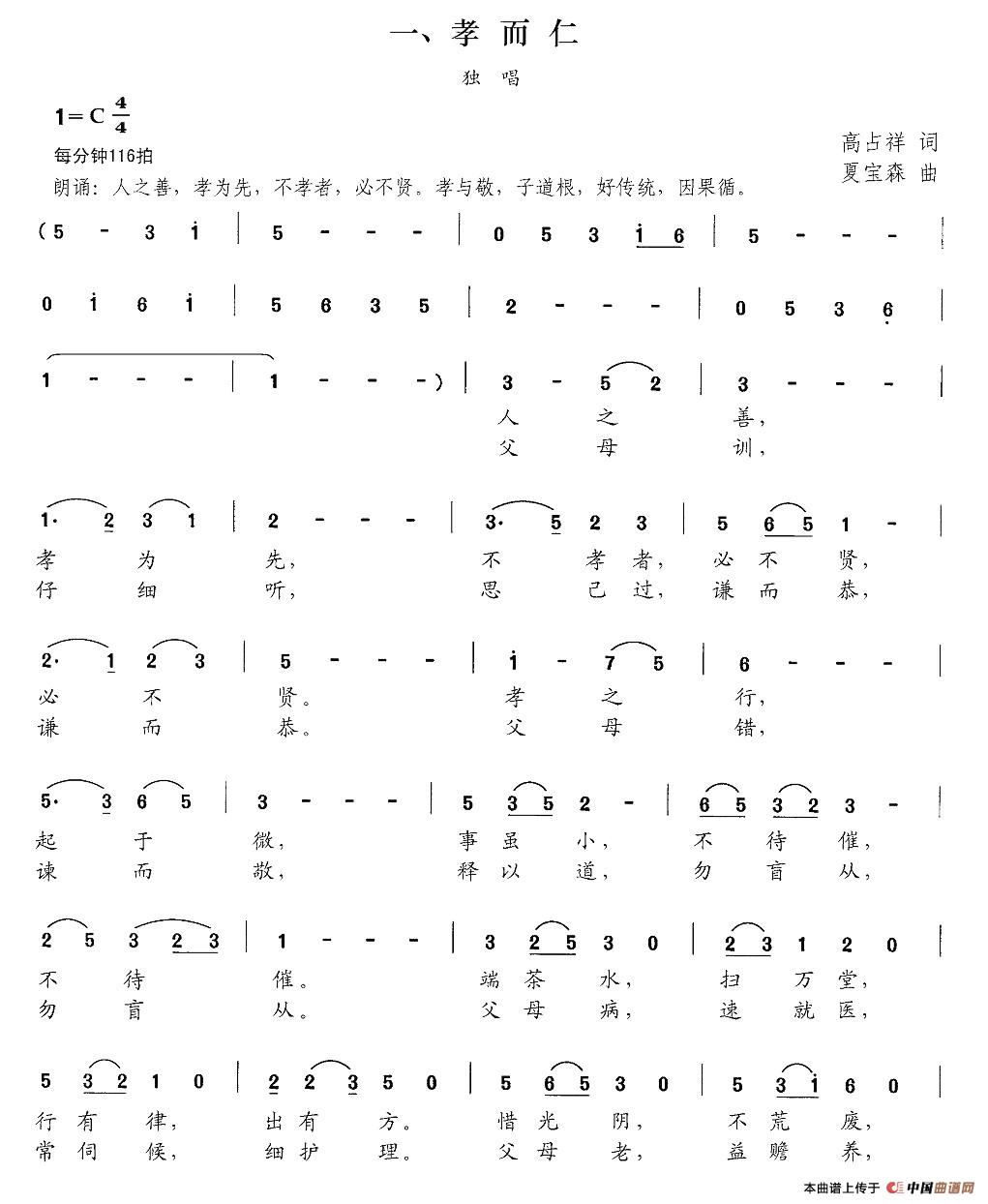 关于《新弟子规 一、孝而仁》曲谱的评论