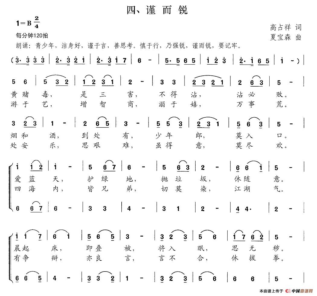 关于《新弟子规 四、谨而锐》曲谱的评论
