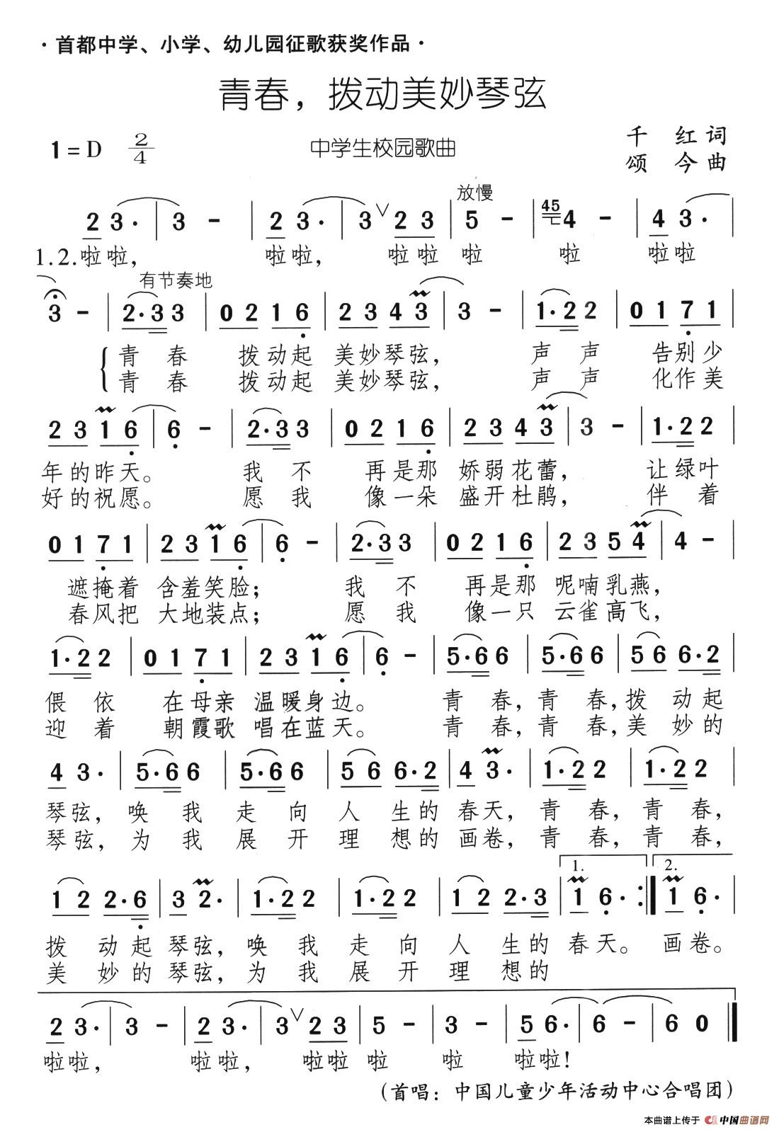 关于《青春,拨动美妙琴弦》曲谱的评论