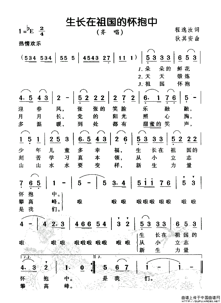 关于《生长在祖国的怀抱中》曲谱的评论