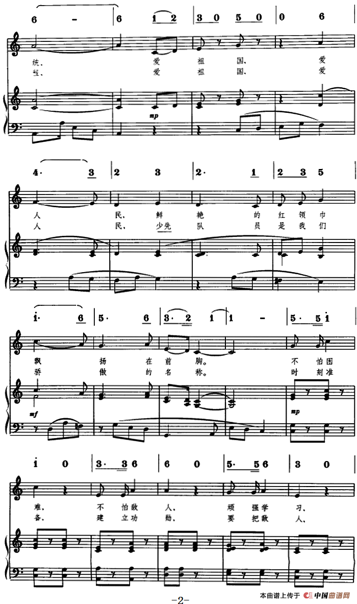 爱祖国,爱人民,鲜艳的红领巾飘扬在前胸。