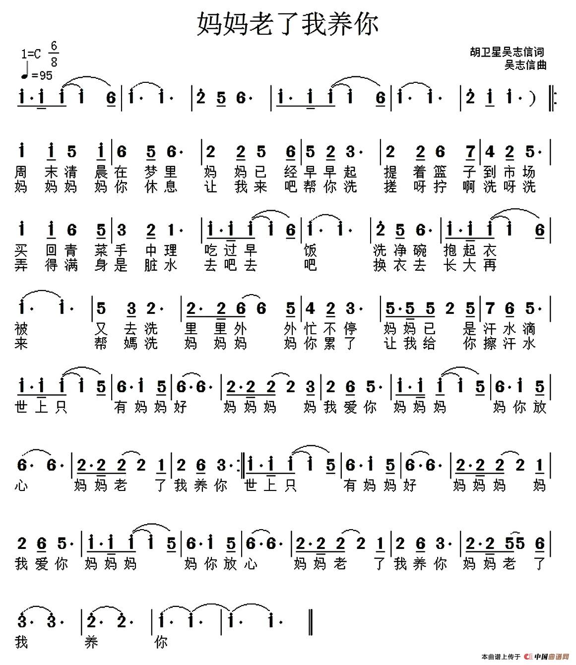 妈妈老了我养你(胡卫星 吴志信词 吴志信曲)