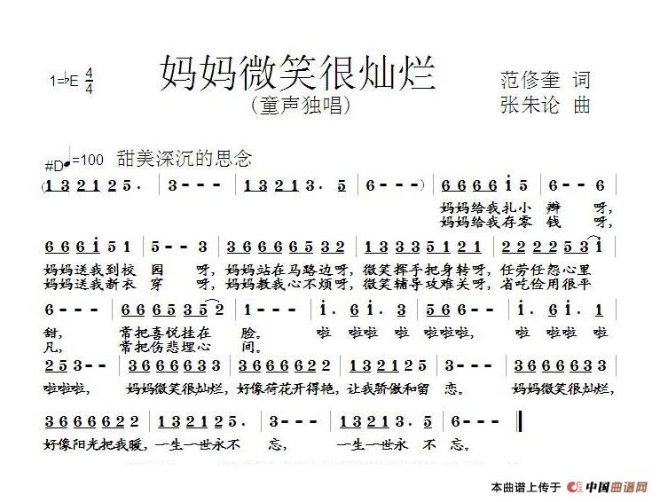 关于《妈妈微笑很灿烂》曲谱的评论