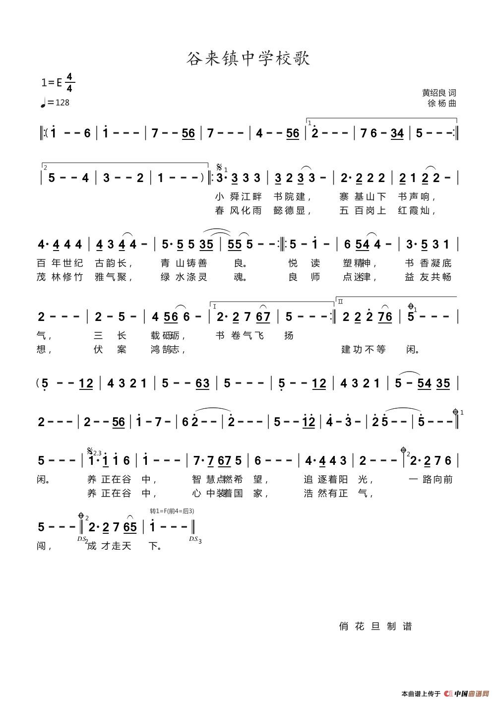 关于《谷来镇中学校歌》曲谱的评论