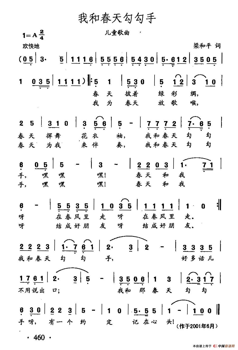 《田光歌曲选-352我和春天勾勾手》文本歌词