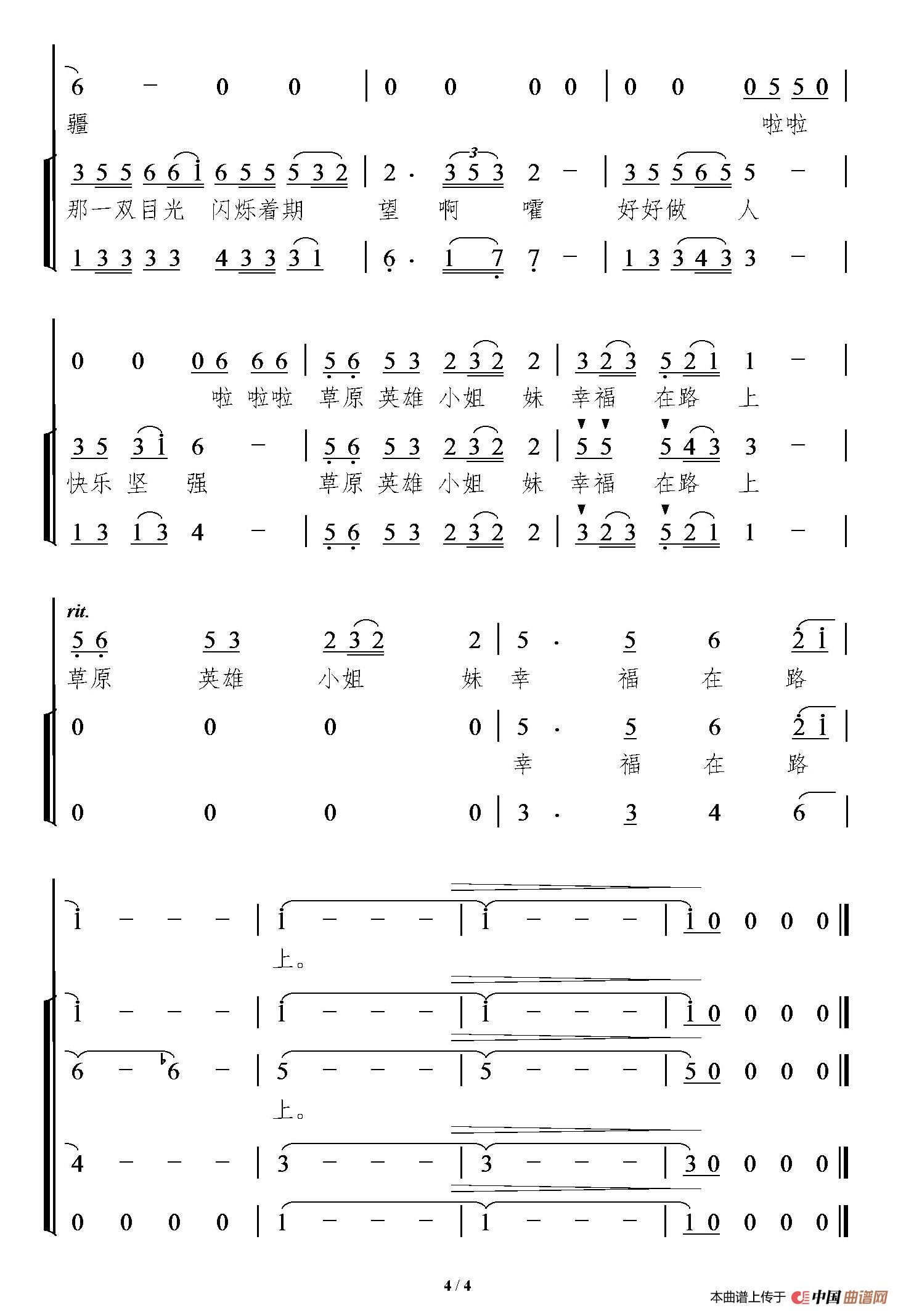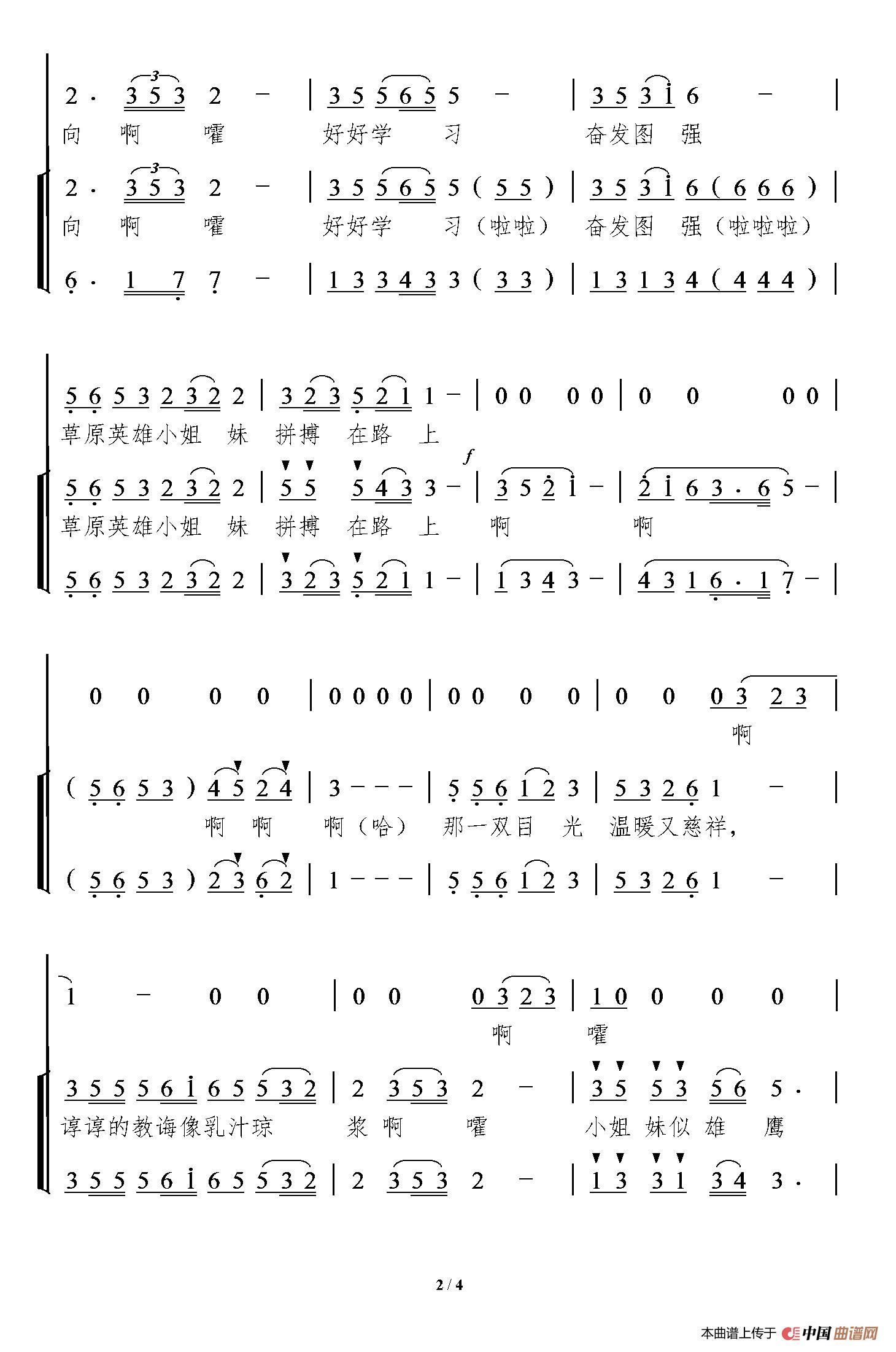 关于《情暖草原》曲谱的评论