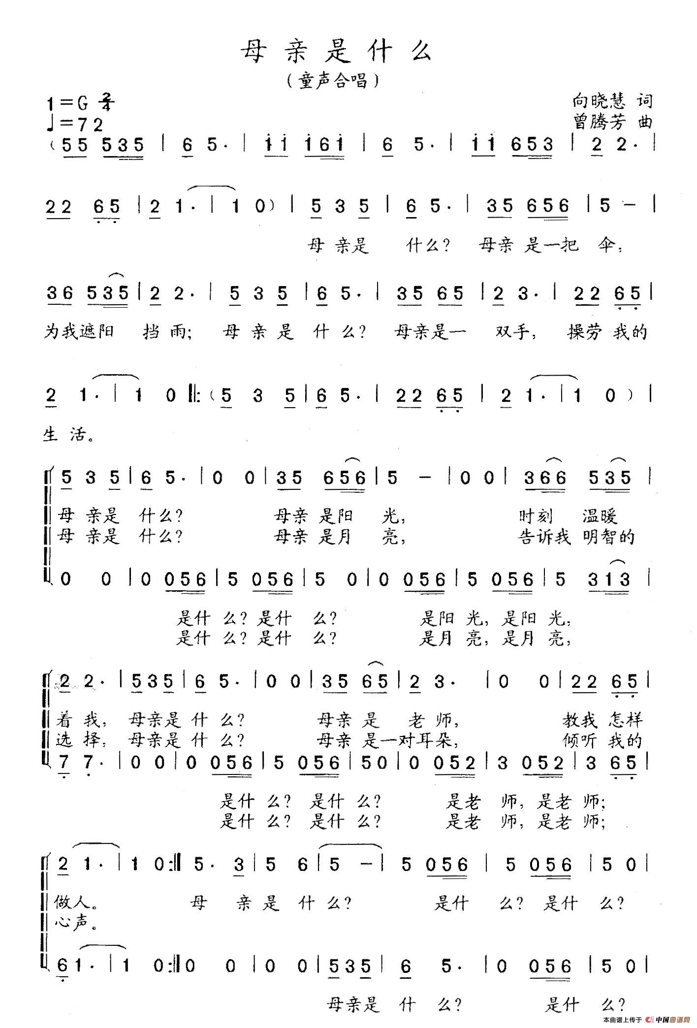 关于《母亲是什么》曲谱的评论