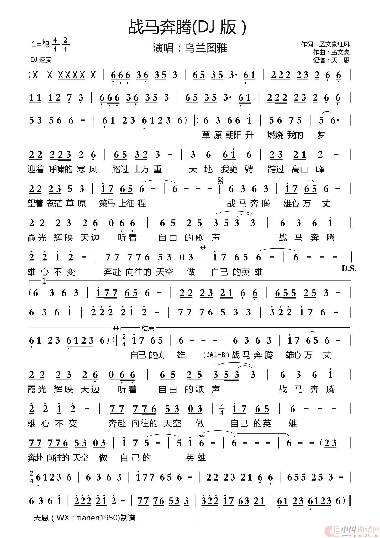 关于《战马奔腾(DJ 版)》曲谱的评论